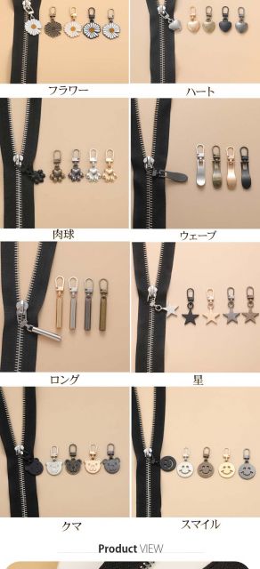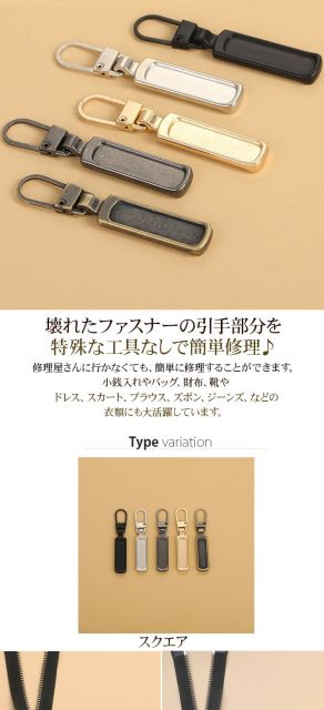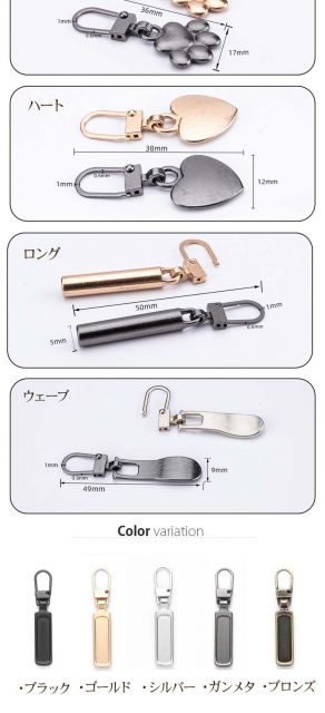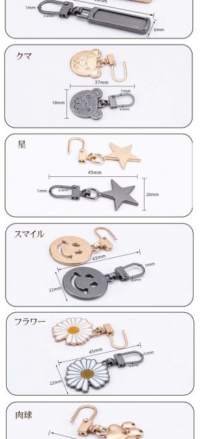 ファスナー 引き手 修理 交換用 修理 バッグ 小物 ブランド雑貨 新作 スクエア フラワー ハート 肉球 ウェーブ ロング 星 クマ スマイル ブラック ゴールド シルバー ガンメタ ブロンズ