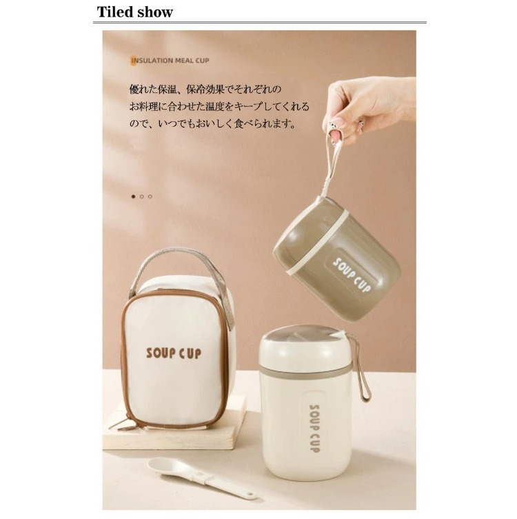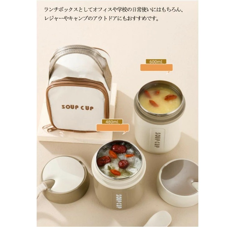通勤 保冷 お弁当 学生 600ml キッチン用品 食器 調理器具 特集 アイボリー【収納バッグ付き】 ブラウン【収納バッグ付き】 600ml 480ml 800ml 1000ml