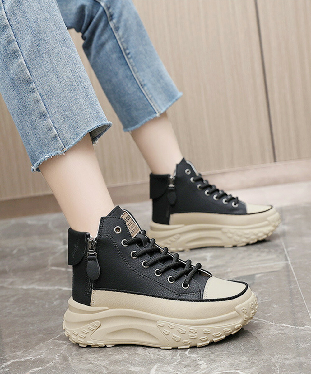 ハイカットスニーカー レディース 厚底 レディース靴 ウォーキングシューズ 早い者勝ち ベージュ ブラック ホワイト 22.5cm(35) 23.0cm(36) 23.5cm(37) 24.0cm(38) 24.5cm(39)