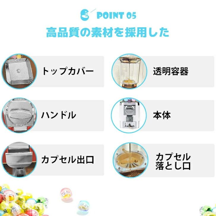 】硬貨を投入してハンドルを回すだけで、ランダムにカプセルトイを手に入れることができます。子供も大人も楽しい時間を共有できます。手軽で簡単な操作で、さまざまな楽しみを提供します。この製品は、楽しさと快適さをお届けします。