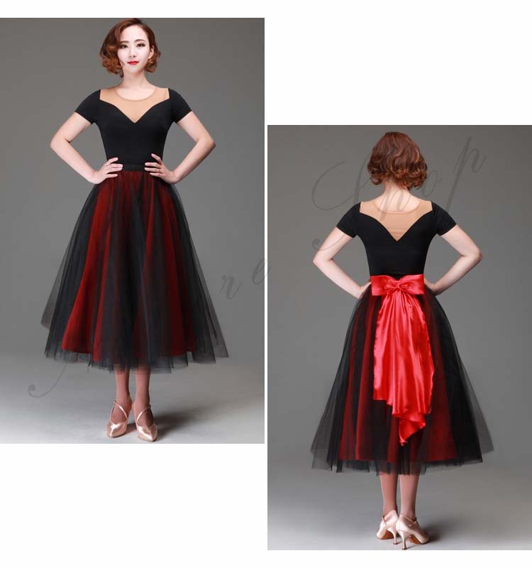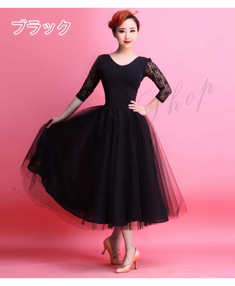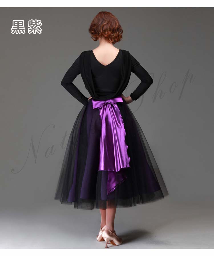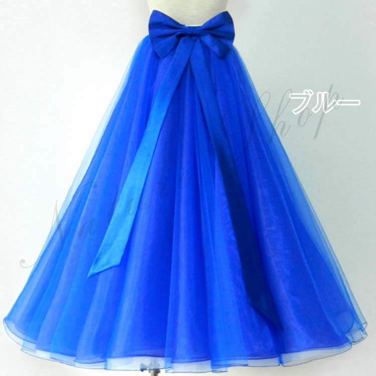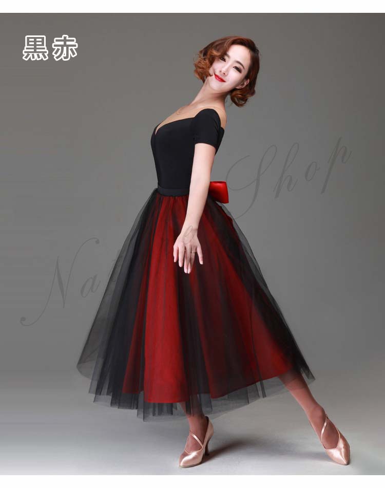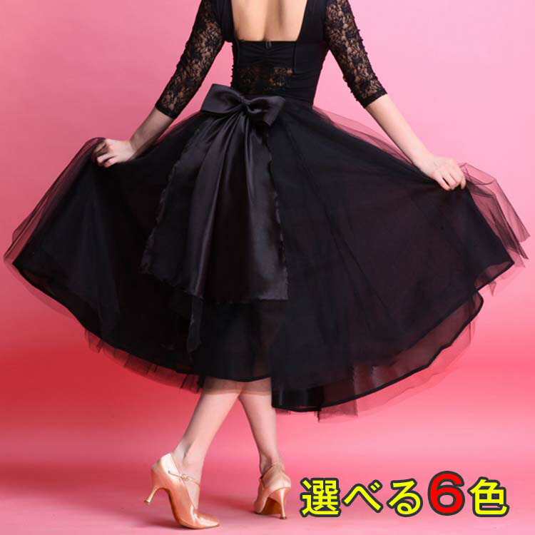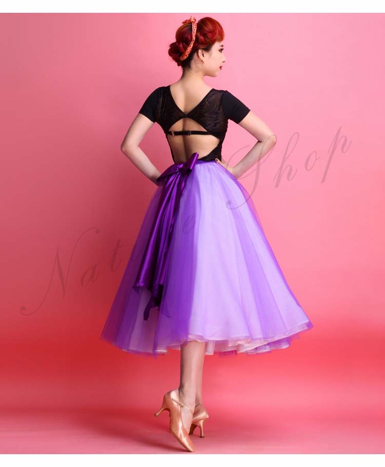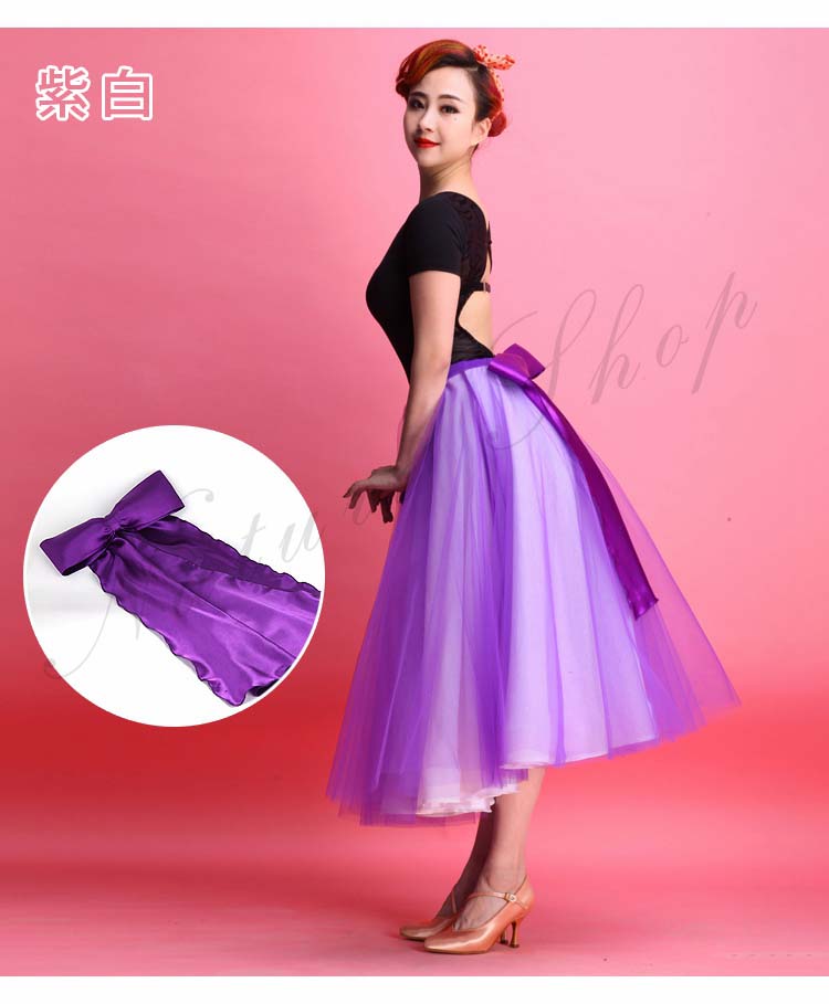 ミモレ丈 バックリボン チュール重ね 体操 ダンス フラメンコ スカート 続々入荷中 180度(2980円) 360度(3280円) 540度(3580円 720度(3880円) 黒赤 黒紫 黒青 紫白 ブルー ホワイト レッド ブラック