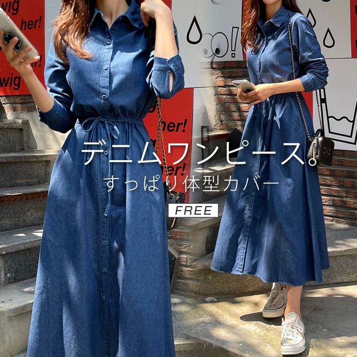 デニム ワンピース 春 秋 長袖 レデ レディースファッション 続々登場