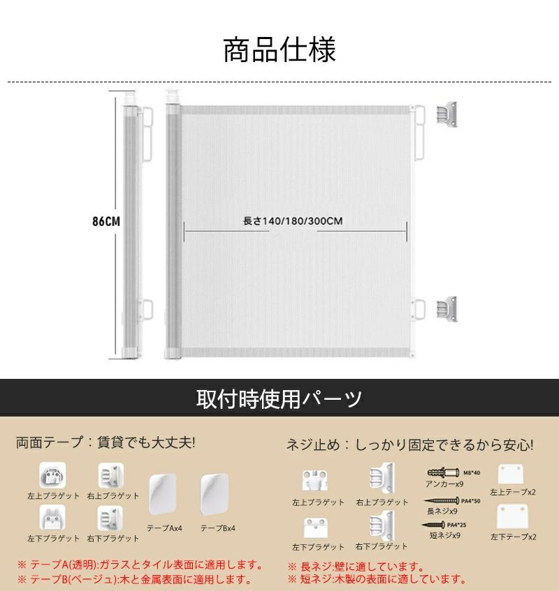 穴開け不要 ネ ベビーガード 上下移動 犬用品 犬小屋 ケージ ゲート ゲート 続々登場 ホワイト グレー ブラック 86cm×140cm 86cm×180cm 86cm×300cm 86cm×500cm