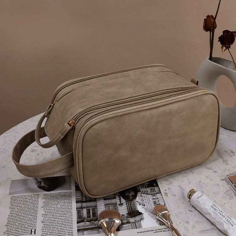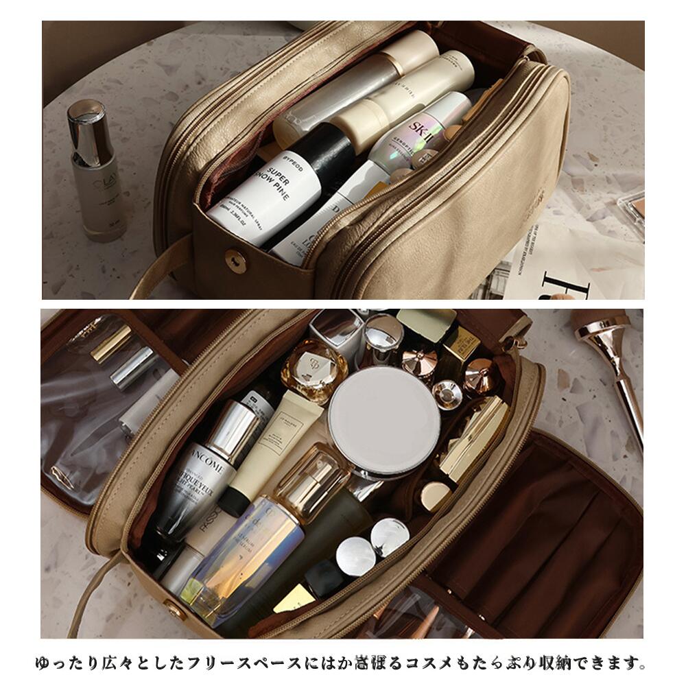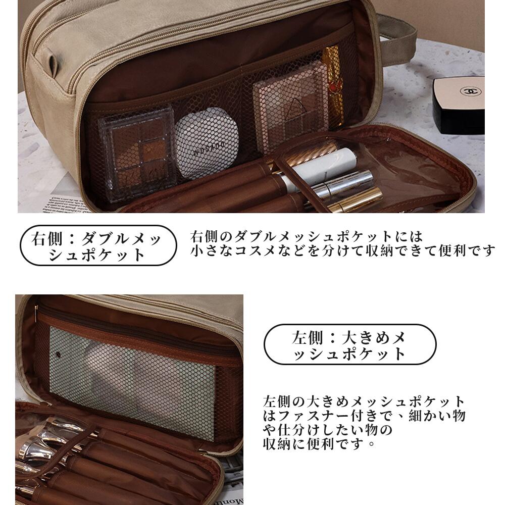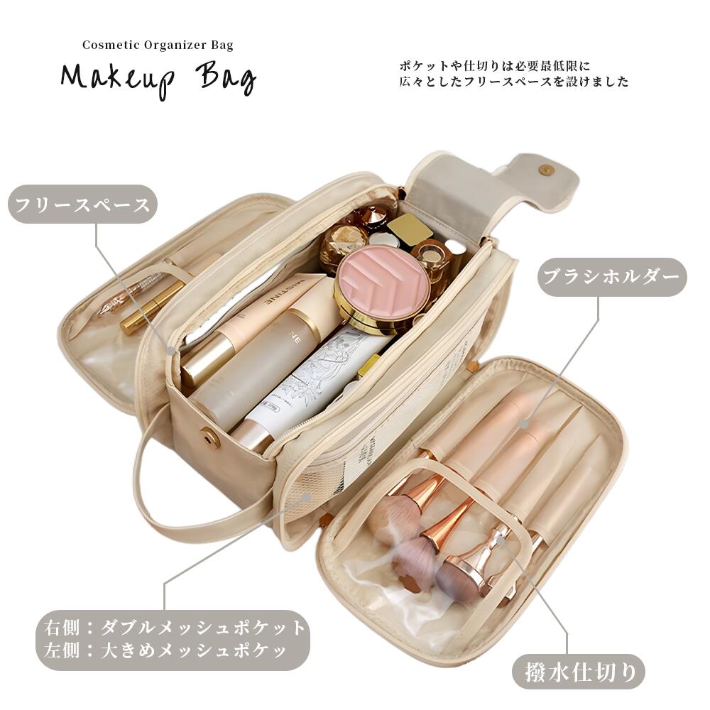 大容量メイクポーチ 化粧ポーチ 旅行用 ブラック アイボリー ブラウン