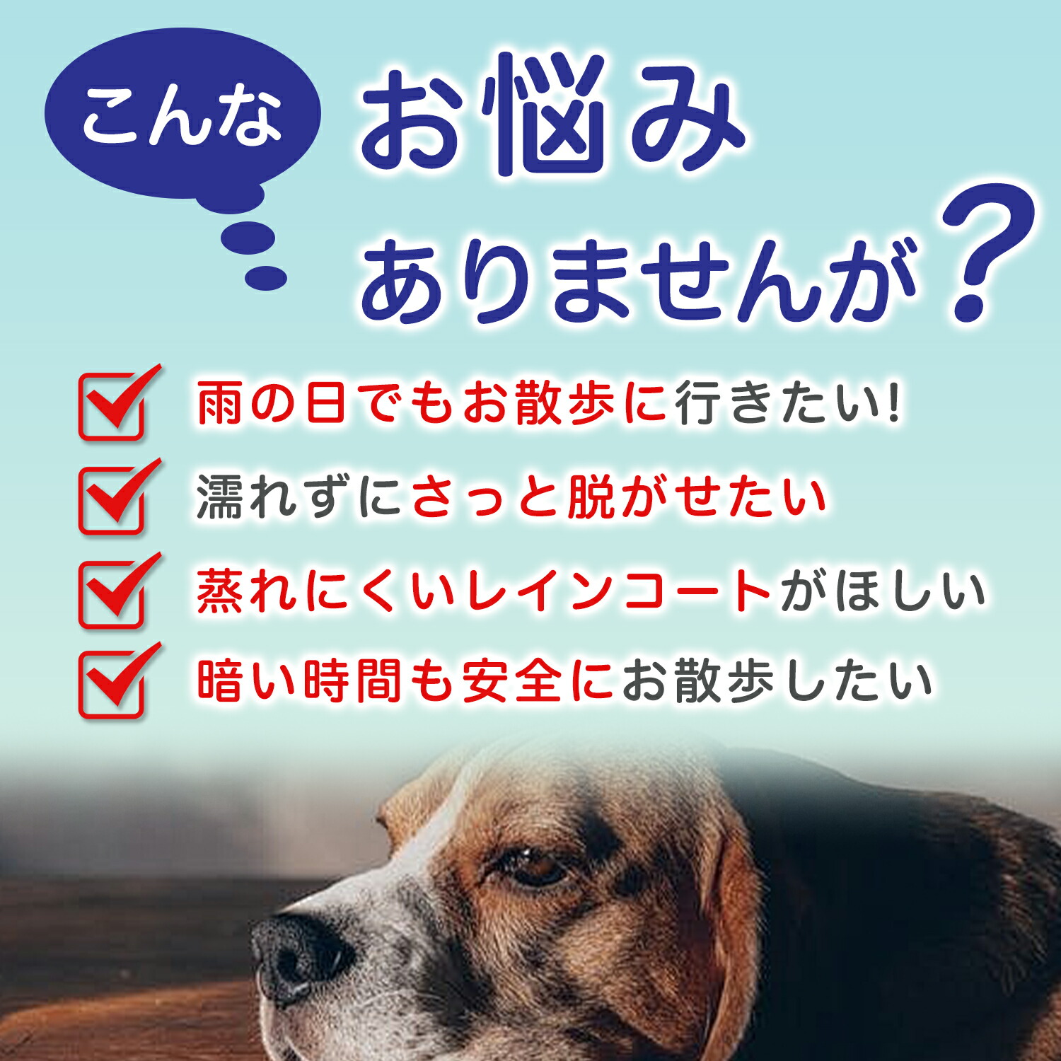 雨の日や雨上がりの散歩、芝生や公園での外遊びで気になる足元の汚れ・濡れ・泥はねを防ぐ、犬用の四足防水ズボンです。