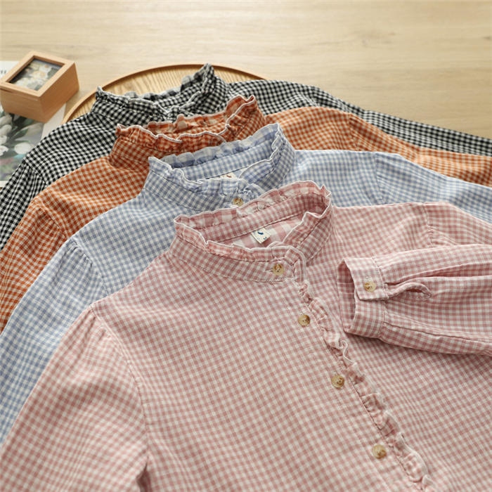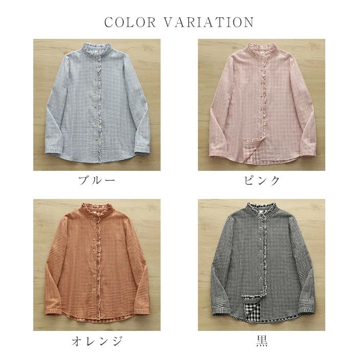 ルガーゼ 2重ガーゼ カジュアル ナチ トップス シャツ ブラウス 超目玉商品 黒 ブルー ピンク オレンジ S M L