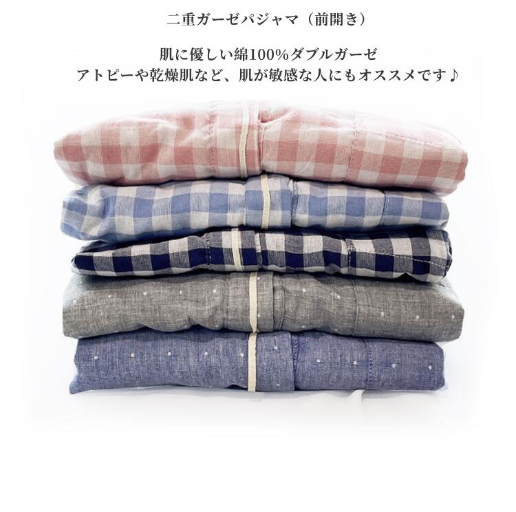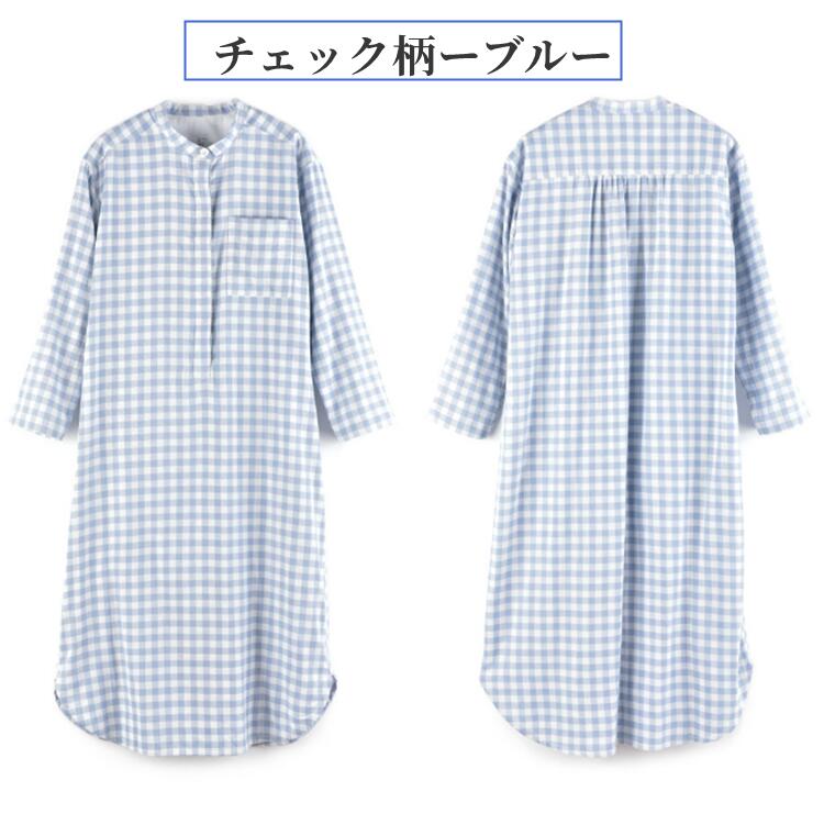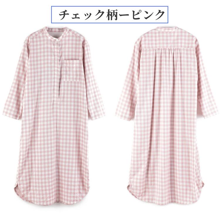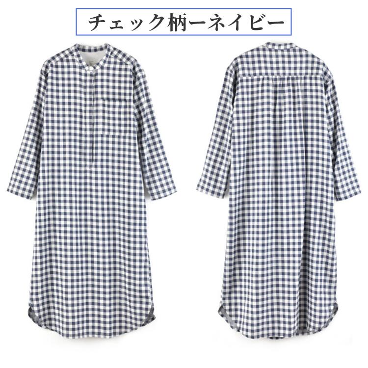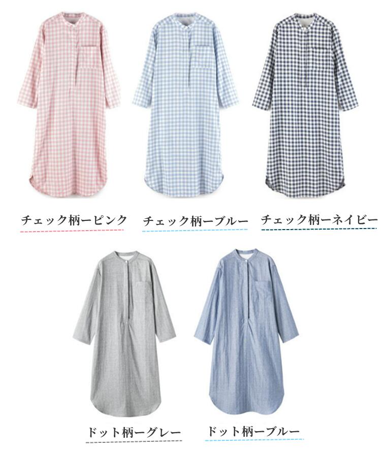 ネグリジェ ワンピース ルームウェア ナイトウェア 綿100% コットン100% ダブルガーゼ ルームワンピース ゆったりパジャマ オールシーズンチェク柄ドット柄前開き 入院準備 マタニティ ゆ 授乳