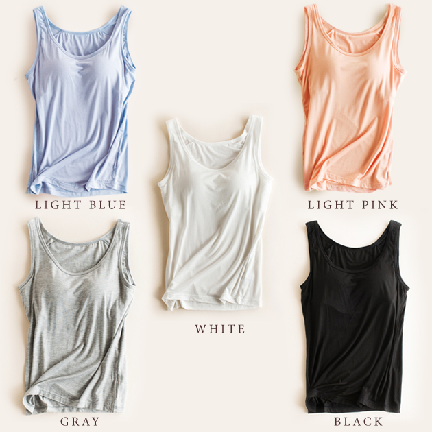 カップ付き タンクトップ レディース レディース インナー 下着 ブラトップ 続々登場 ブラック ホワイト グレー ライトブルー ライトピンク S M L XL XXL