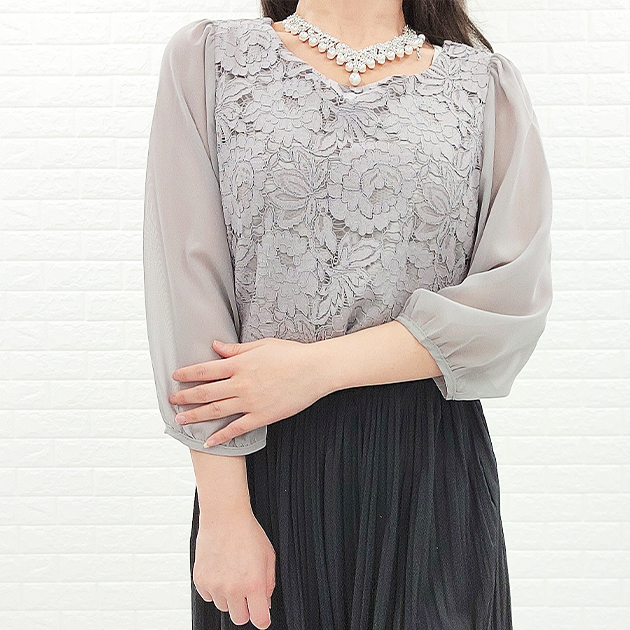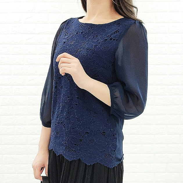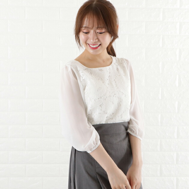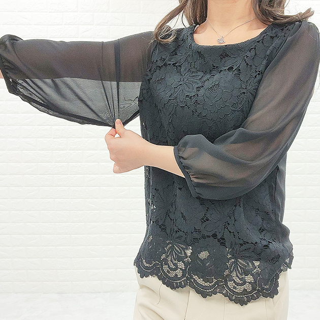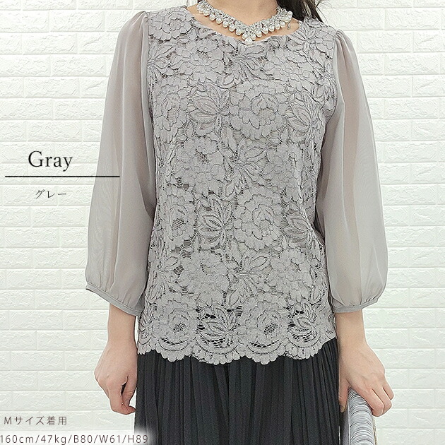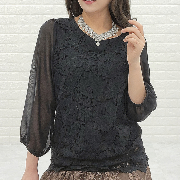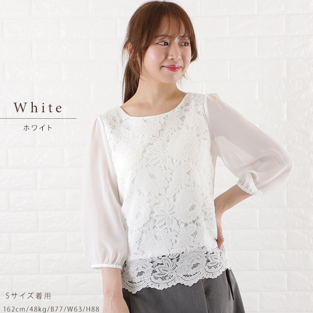 シフォン レース ブラウス 七分袖 レ レディースファッション 新登場! ブラック ホワイト アイボリー グレー ネイビー S M L XL