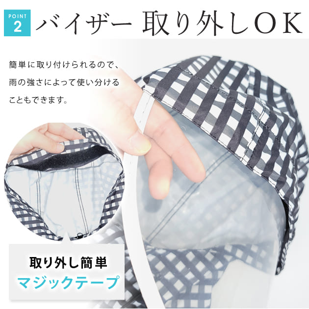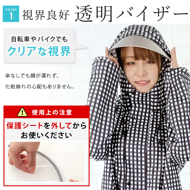 バイザー取り外し可 レインコート 軽量 レディースファッション 続々入荷中 ブラック ネイビー ブルーグリーン ベージュ グリーン チェック