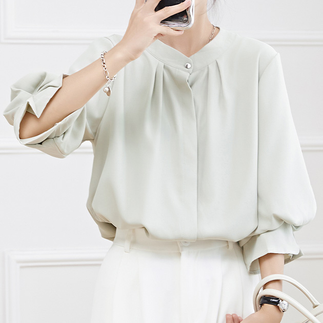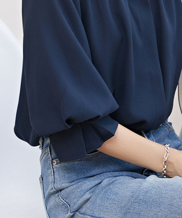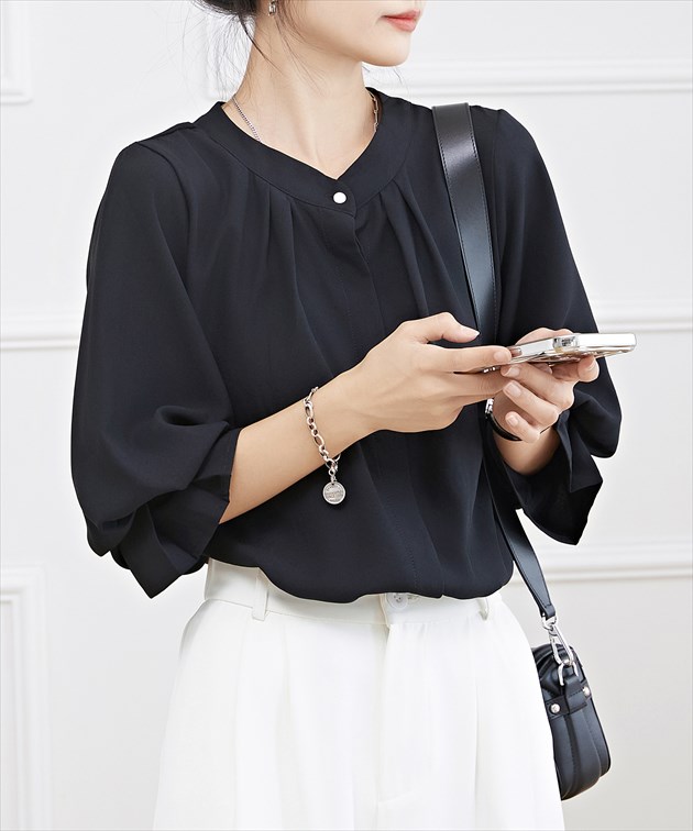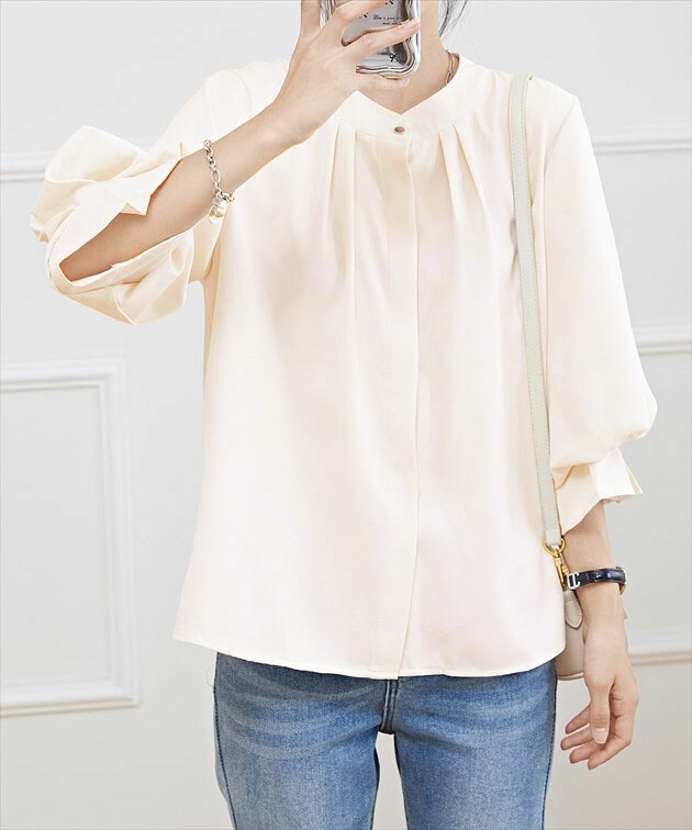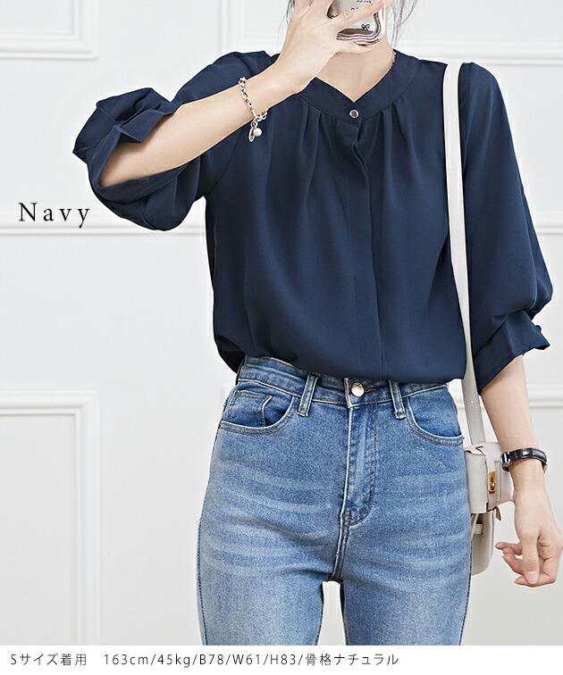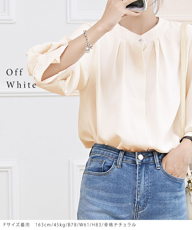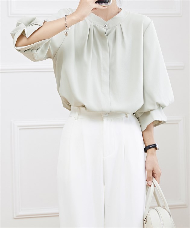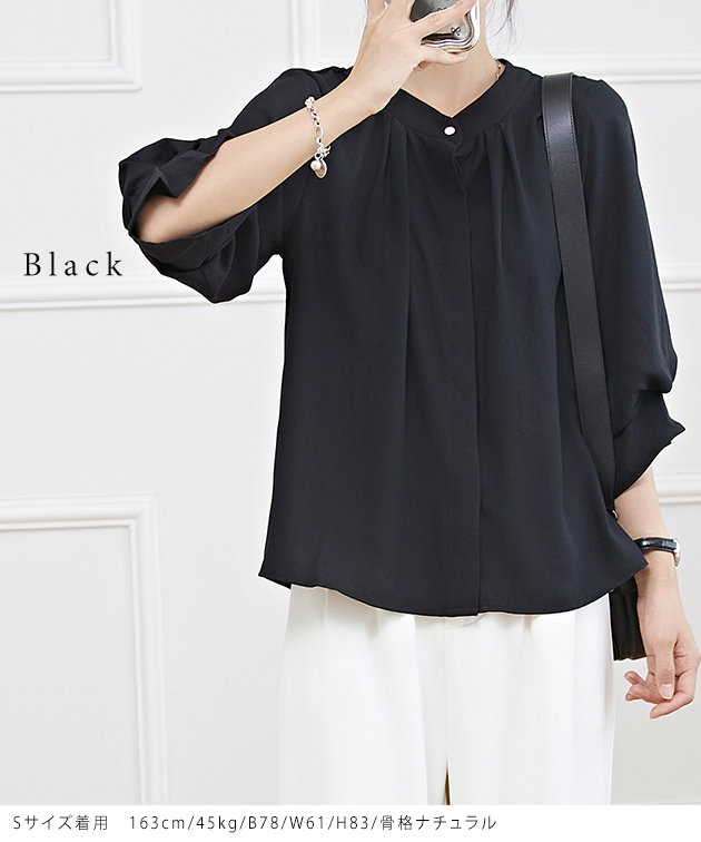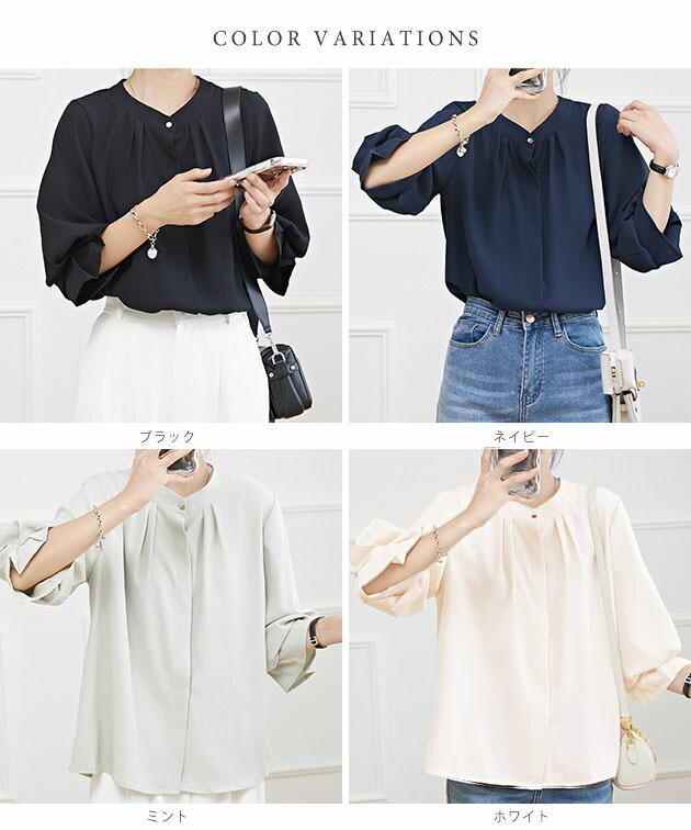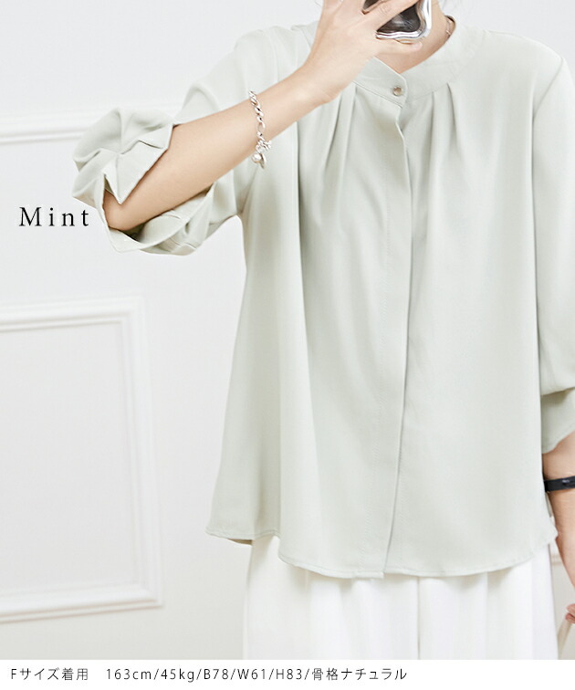 キャンディ袖 7分袖 フレア タック レディースファッション 新登場! ブラック オフホワイト ネイビー ミント S F