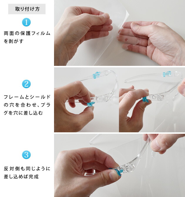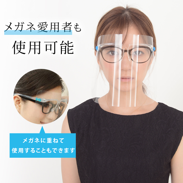 フェイスシールド メガネ めがね 眼鏡 ホワイト ブルー