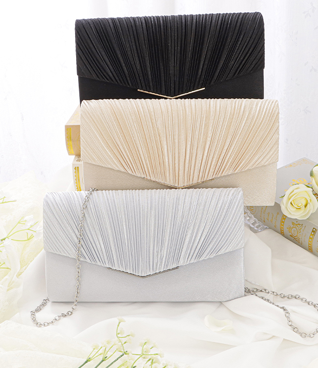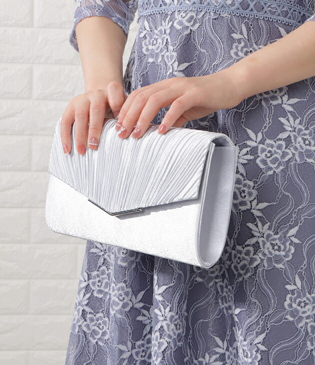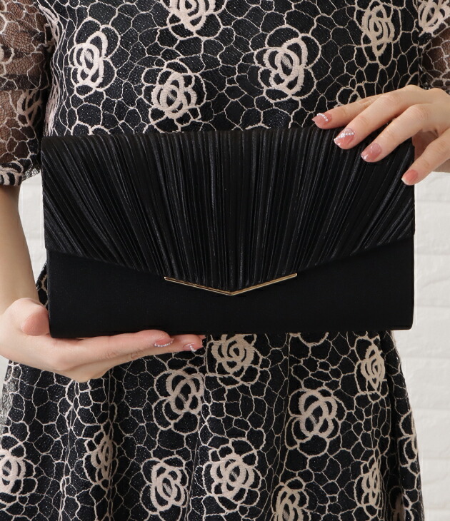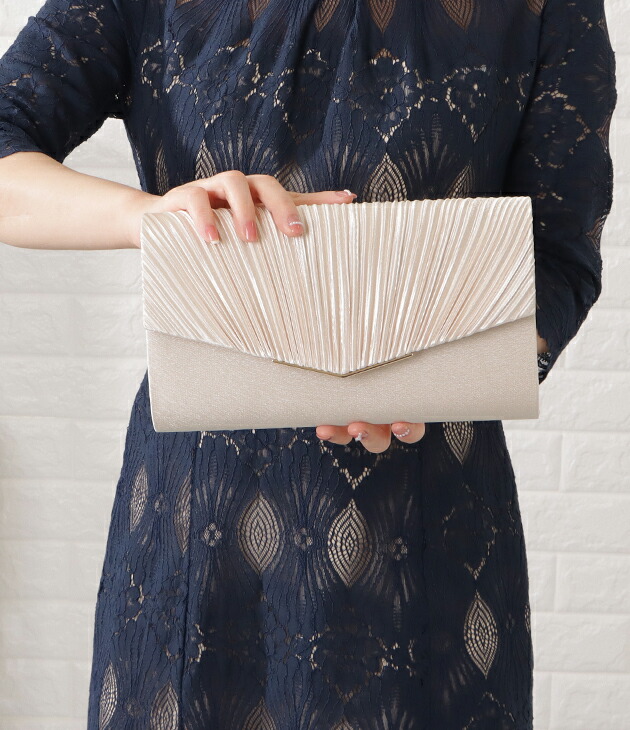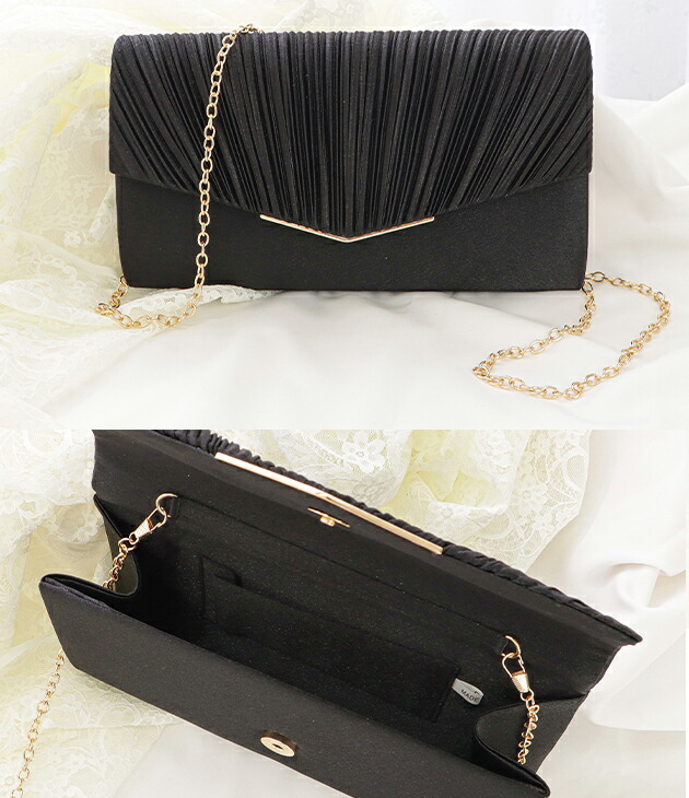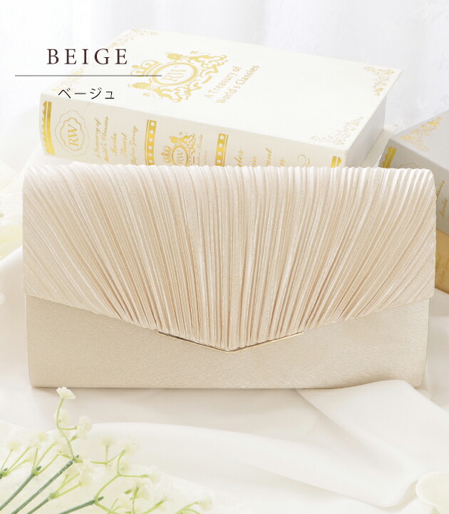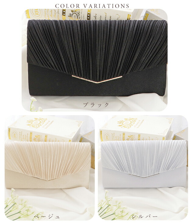 サテン プリーツ パーティーバッグ ハ バッグ 小物 ブランド雑貨 早い者勝ち ブラック ベージュ シルバー