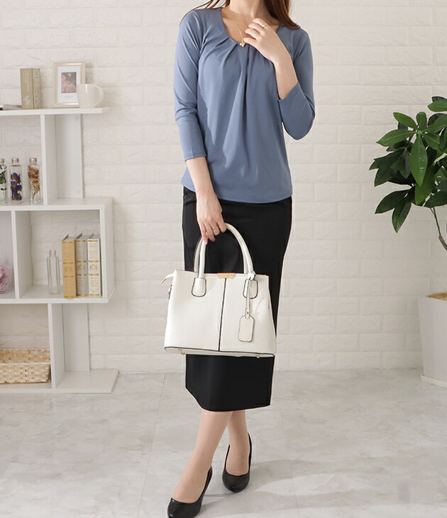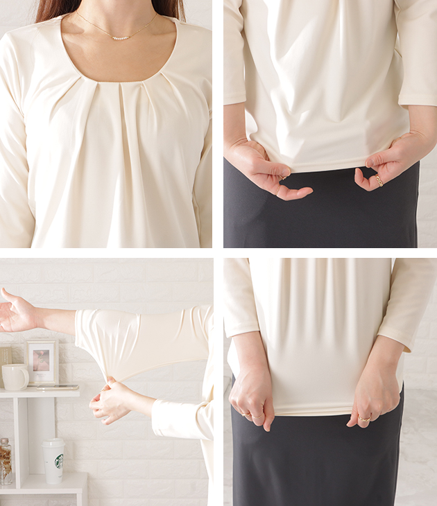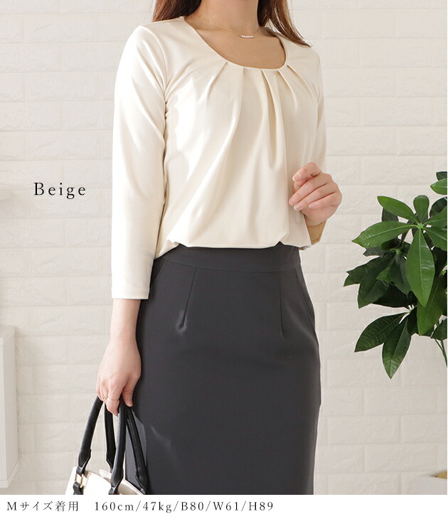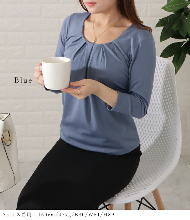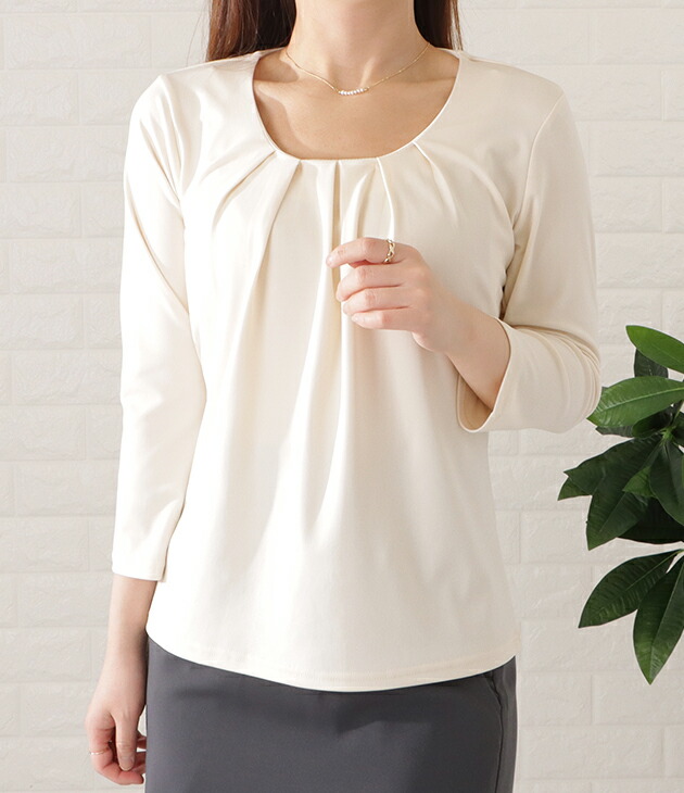 7分袖タックフロントプルオーバー レデ レディースファッション 超目玉商品 ブラック ホワイト ベージュ ブルー S M L XL