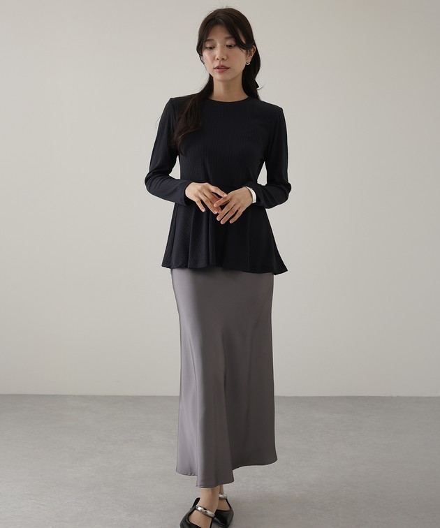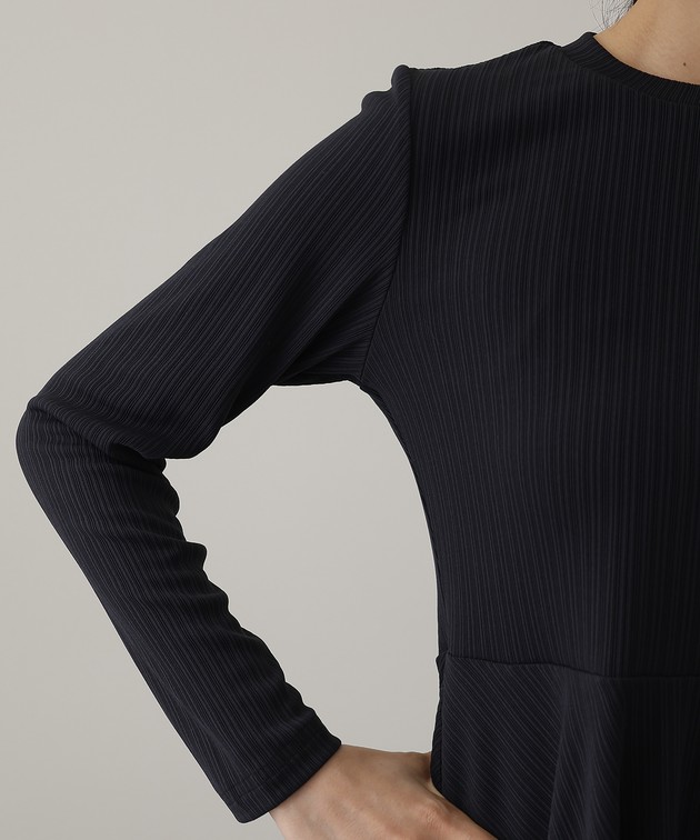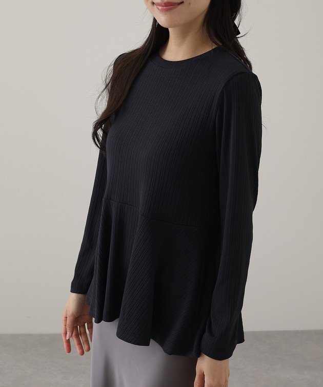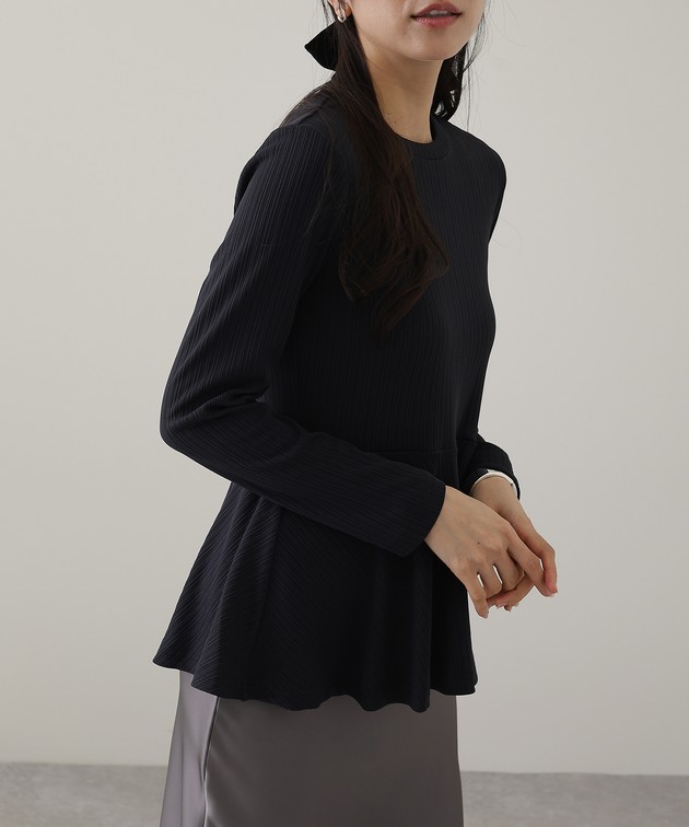 ペプラムシルエットが上品なランダムリブ素材のトップス。