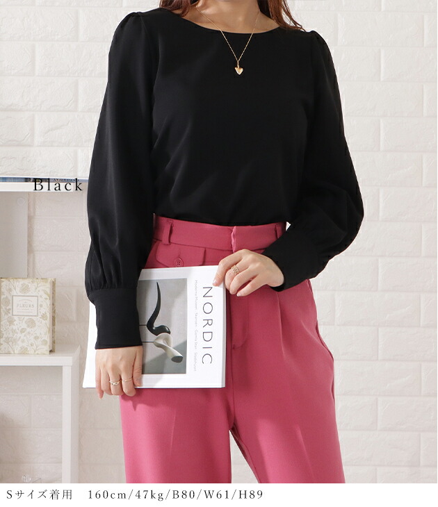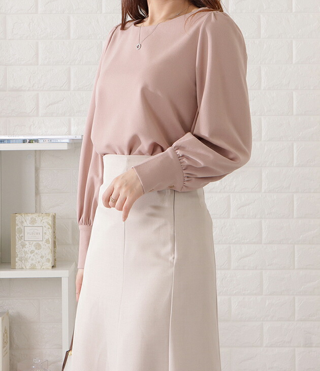 バルーンスリーブとろみタックブラウス トップス シャツ ブラウス 超目玉商品 ブラック ベージュ ブルーグレー ピンクグレー S F