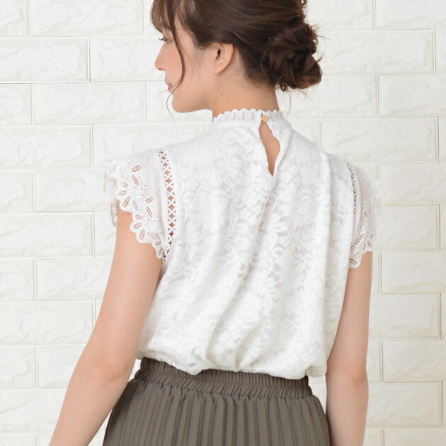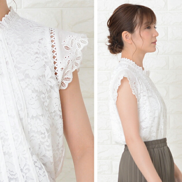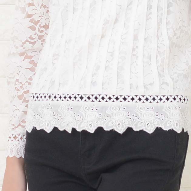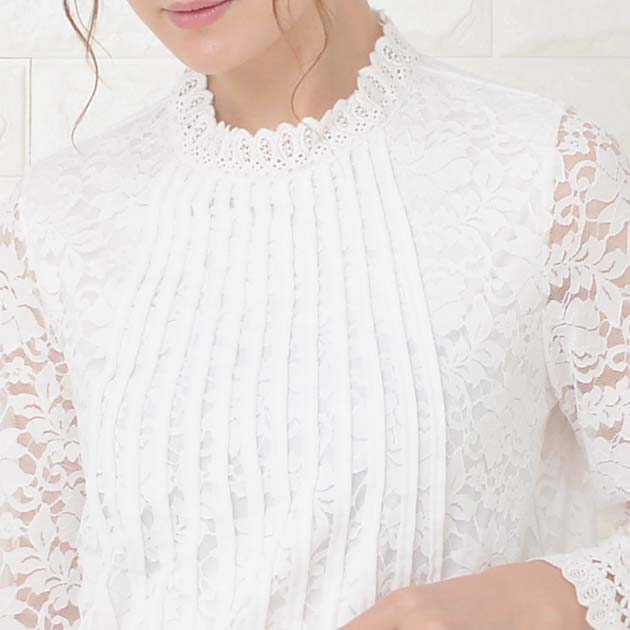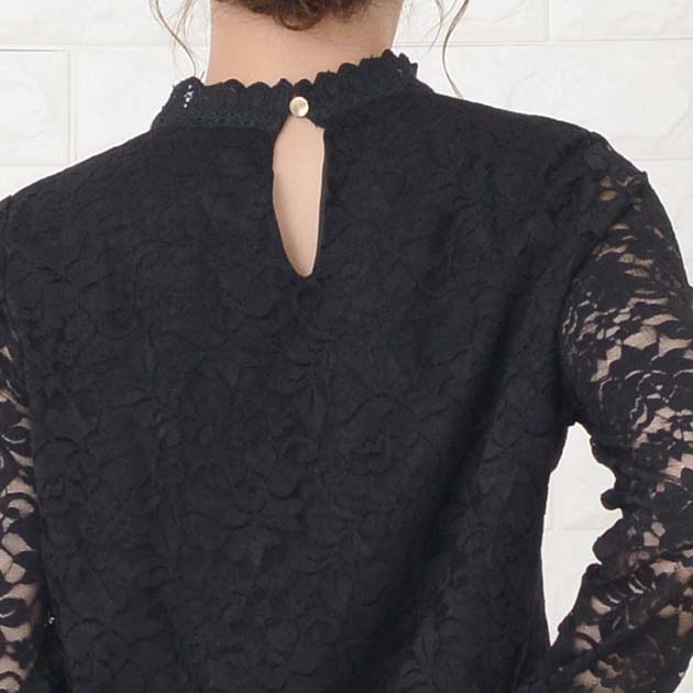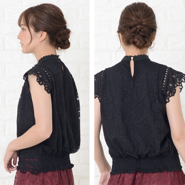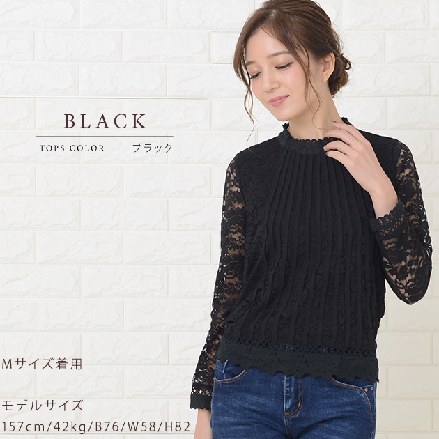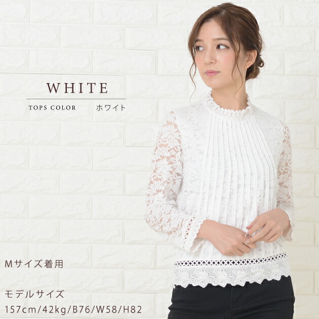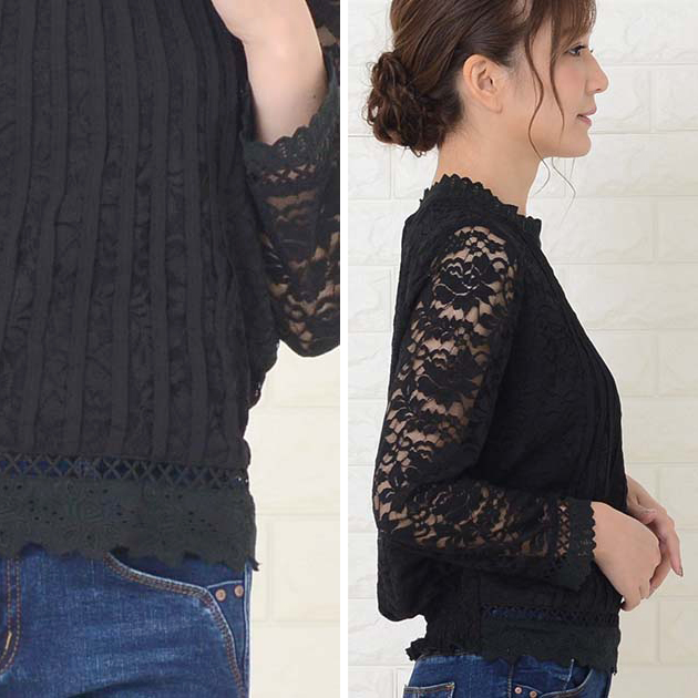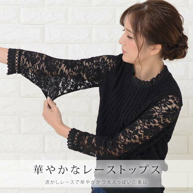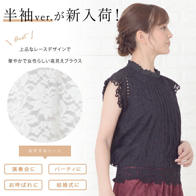 透かしレース 長袖 半袖 フリル カットソー レース 上品 薄手 レディース 通 高襟 立ち襟 パーティー 結婚式 フォーマル 二次会 ビジネス 通勤 OL ブラック ブラウス レースシャツ ホワイト