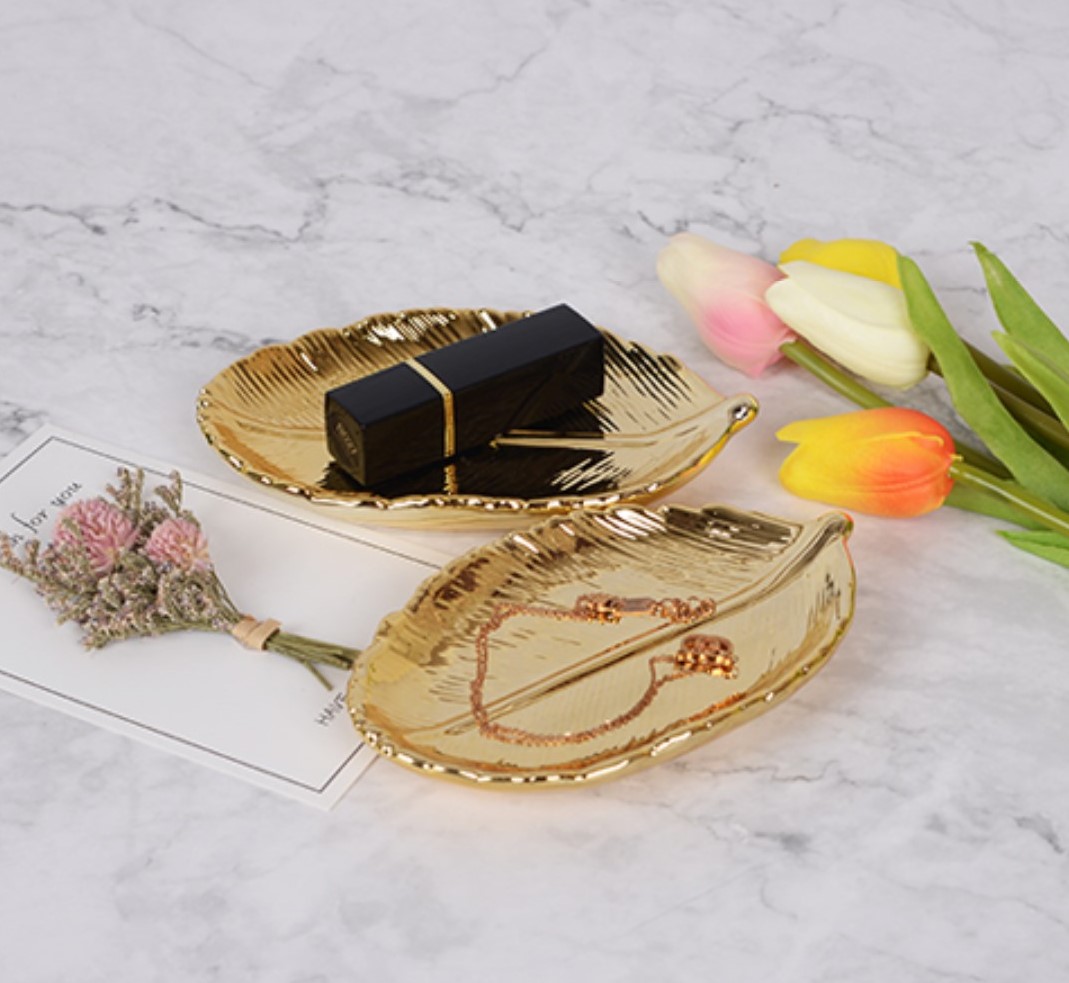 リーフプレートゴールド韓国雑貨北欧インテリアディスプレイアンティークセットかわいいおしゃれ収納小物入れアクセサリー小さい小さめ整理ケース卓上割れないステンレス トレイ