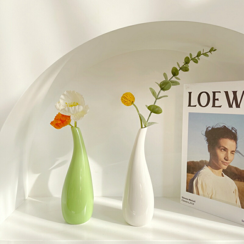 花瓶3色陶器ガラス一輪挿しおしゃれかわ グリーン ホワイト ブルー