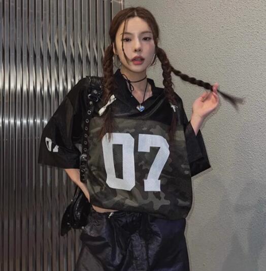 ユニフォーム風メッシュロゴナンバー半袖 トップス Tシャツ カットソー 特集