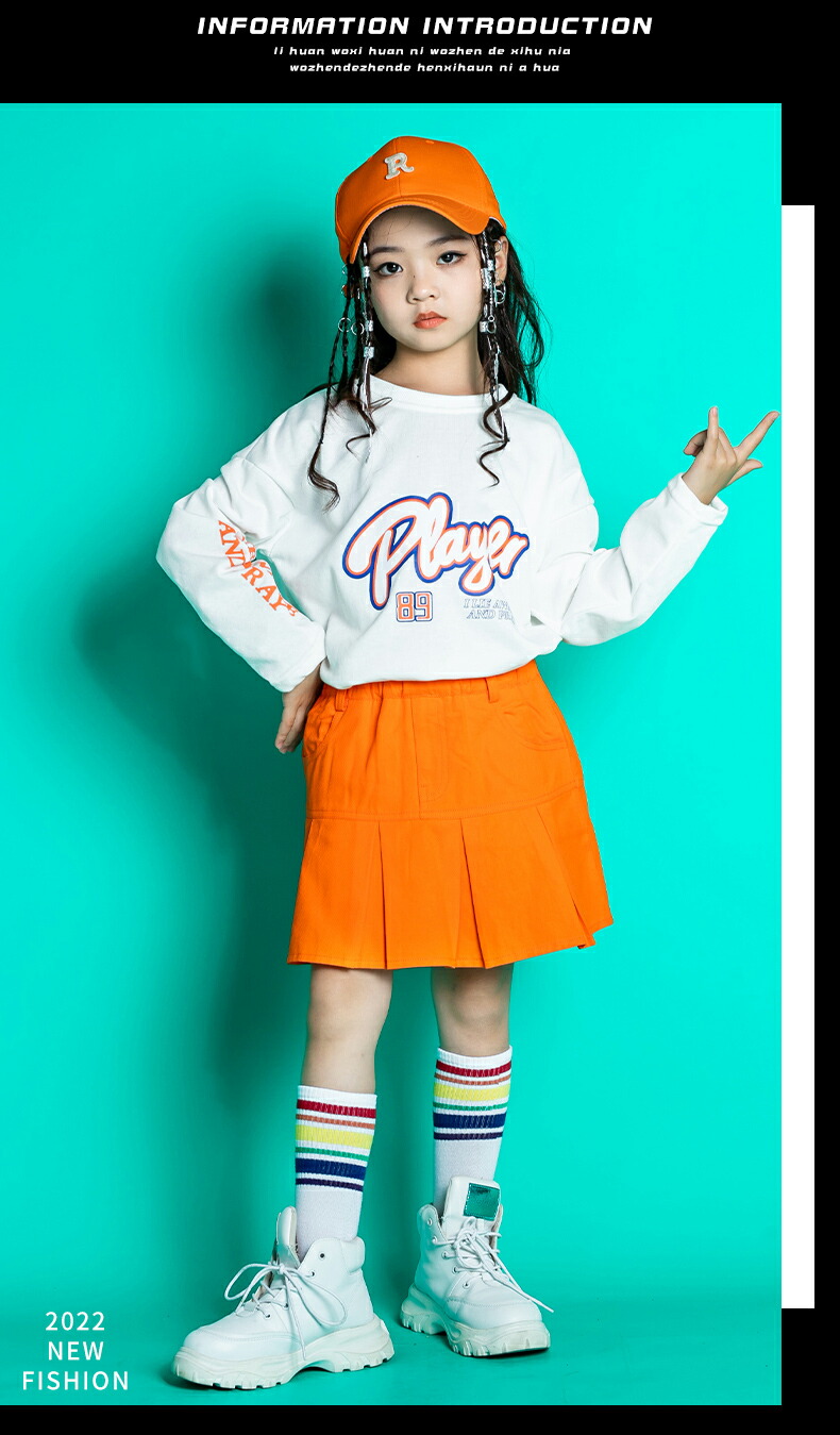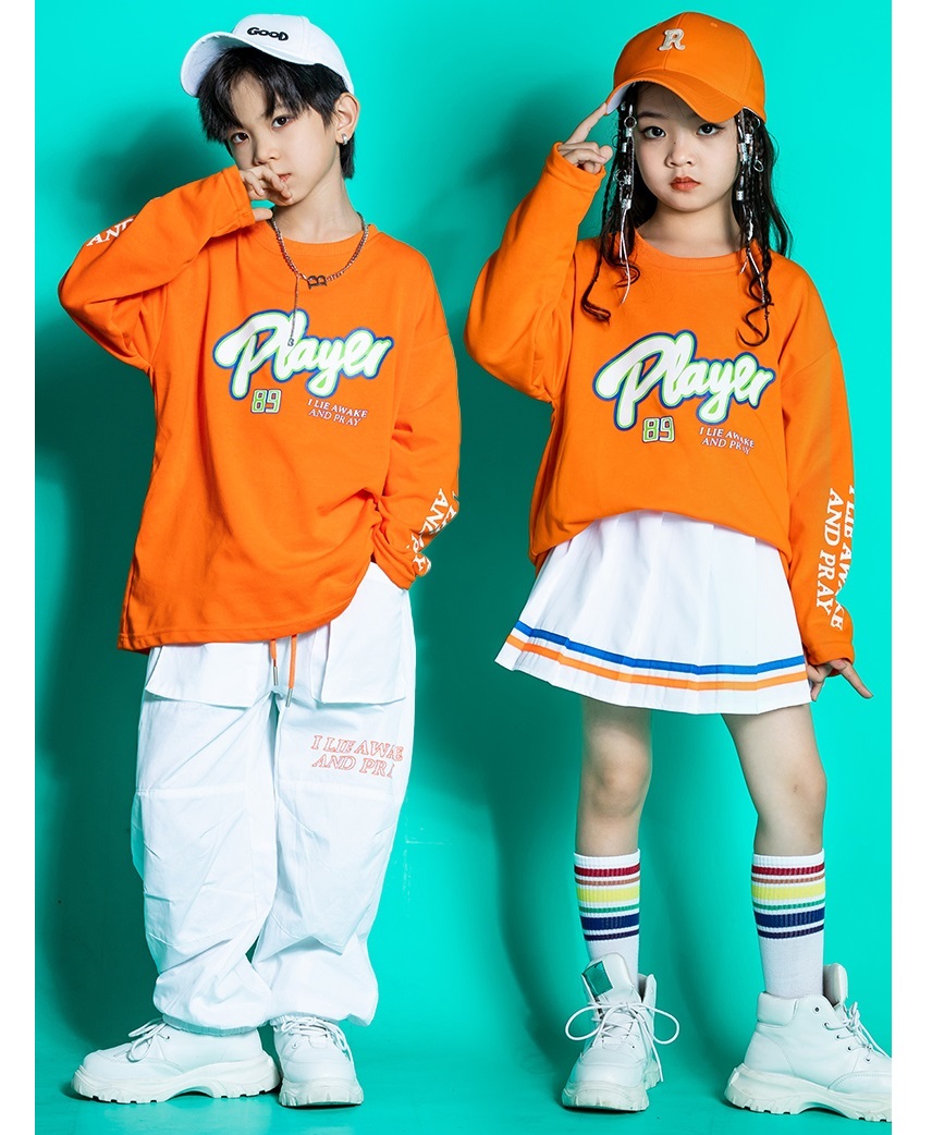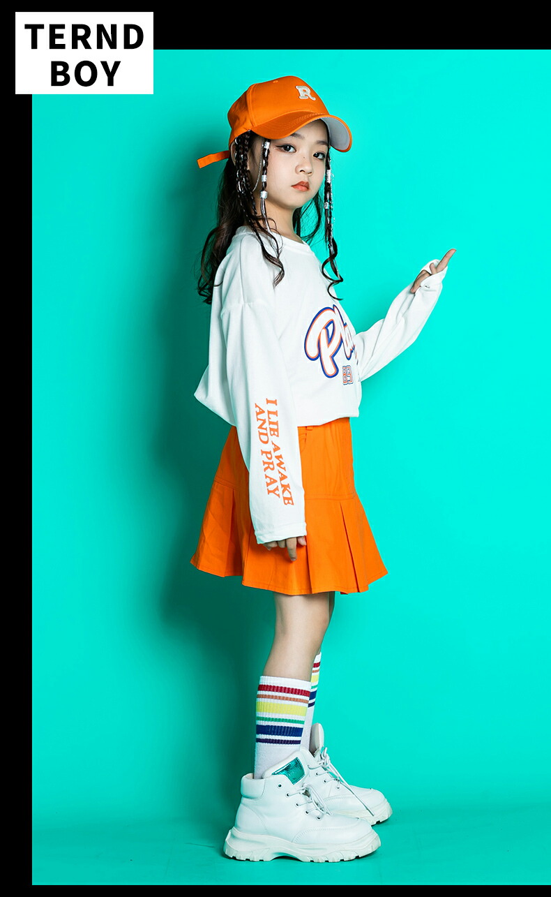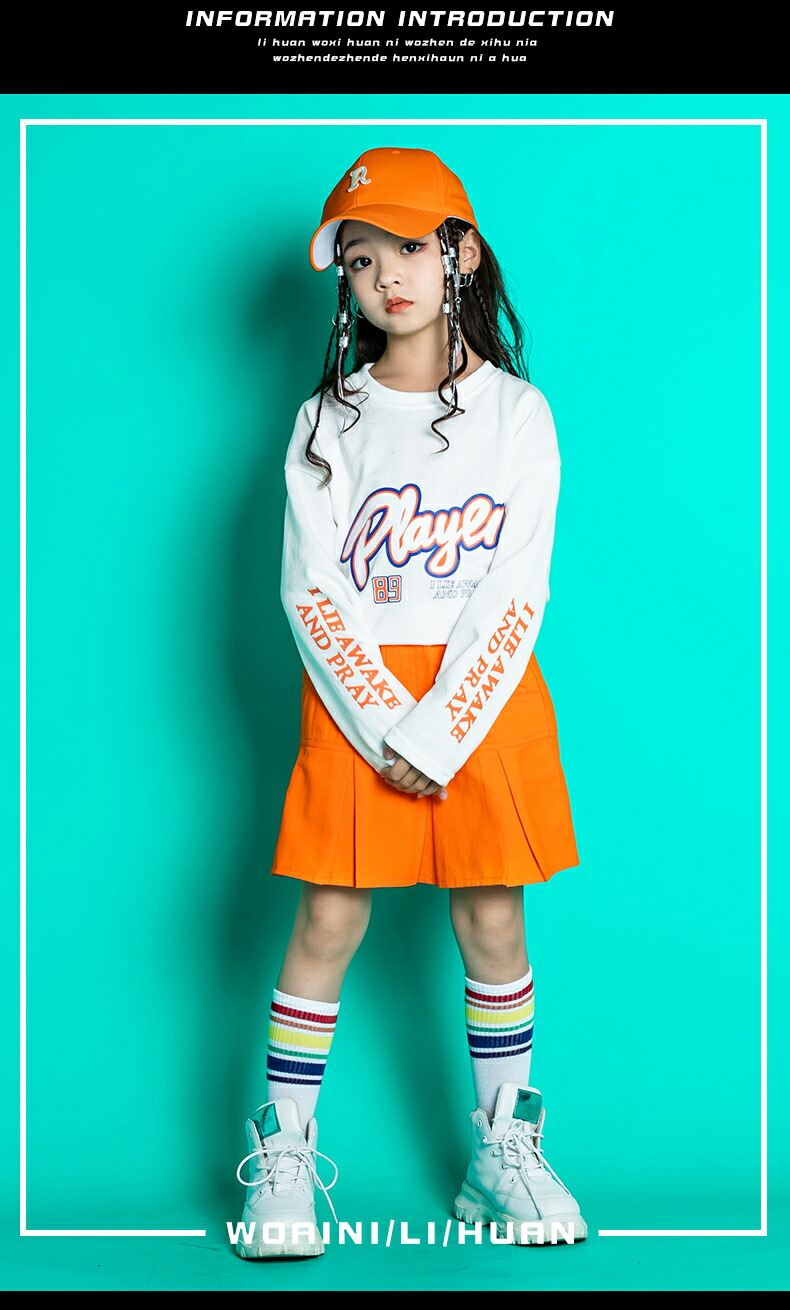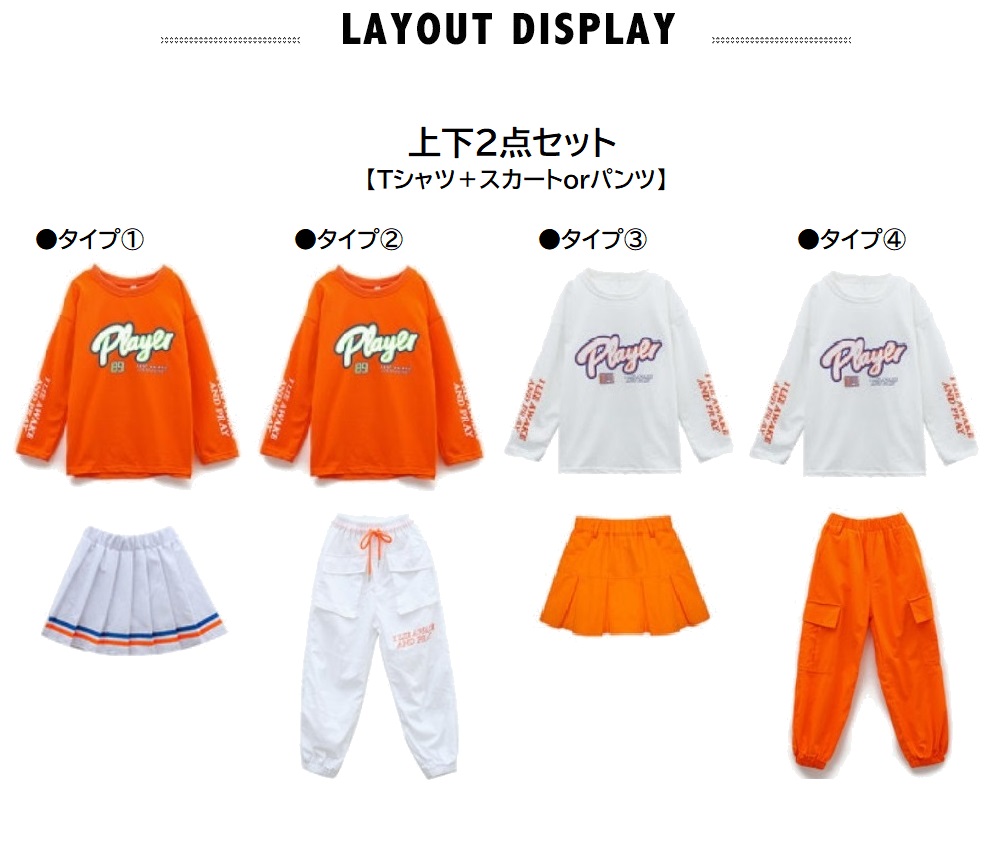 キッズダンス衣装 セットアップ Tシャ キッズ スーツ カジュアルセットアップ カジュアルパンツセット 新登場! タイプ1(オレンジロンT+スカート) タイプ2(オレンジロンT+パンツ) タイプ3(ホワイトロンT+スカート) タイプ4(ホワイトロンT+パンツ) 110サイズ 120サイズ 130サイズ 140サイズ 150サイズ 160サイズ 170サイズ 180サイズ