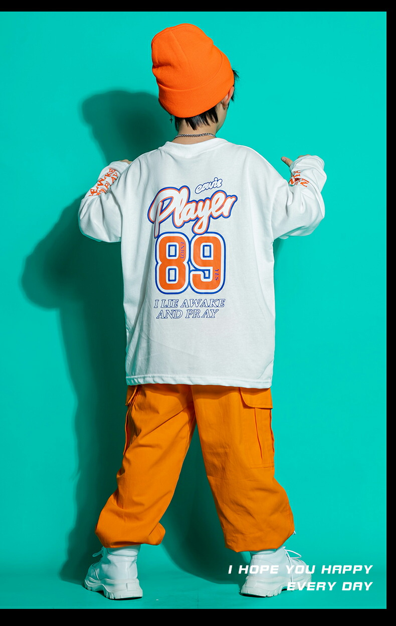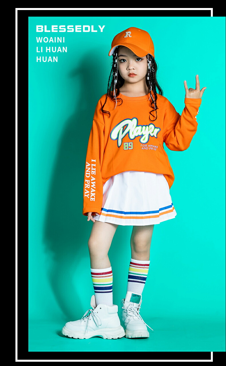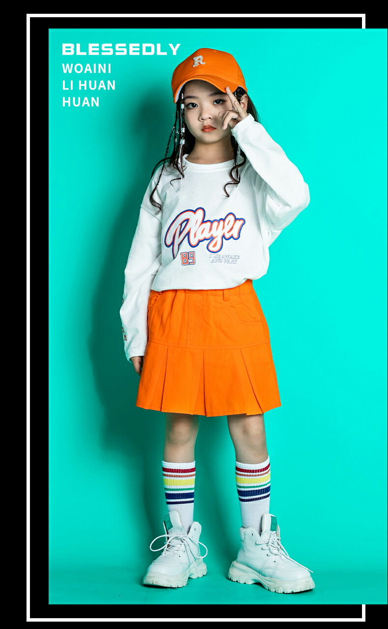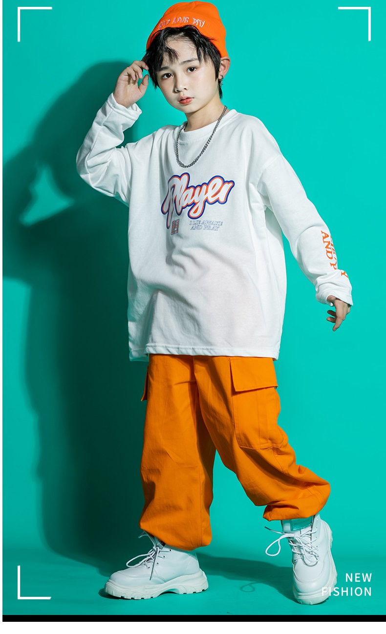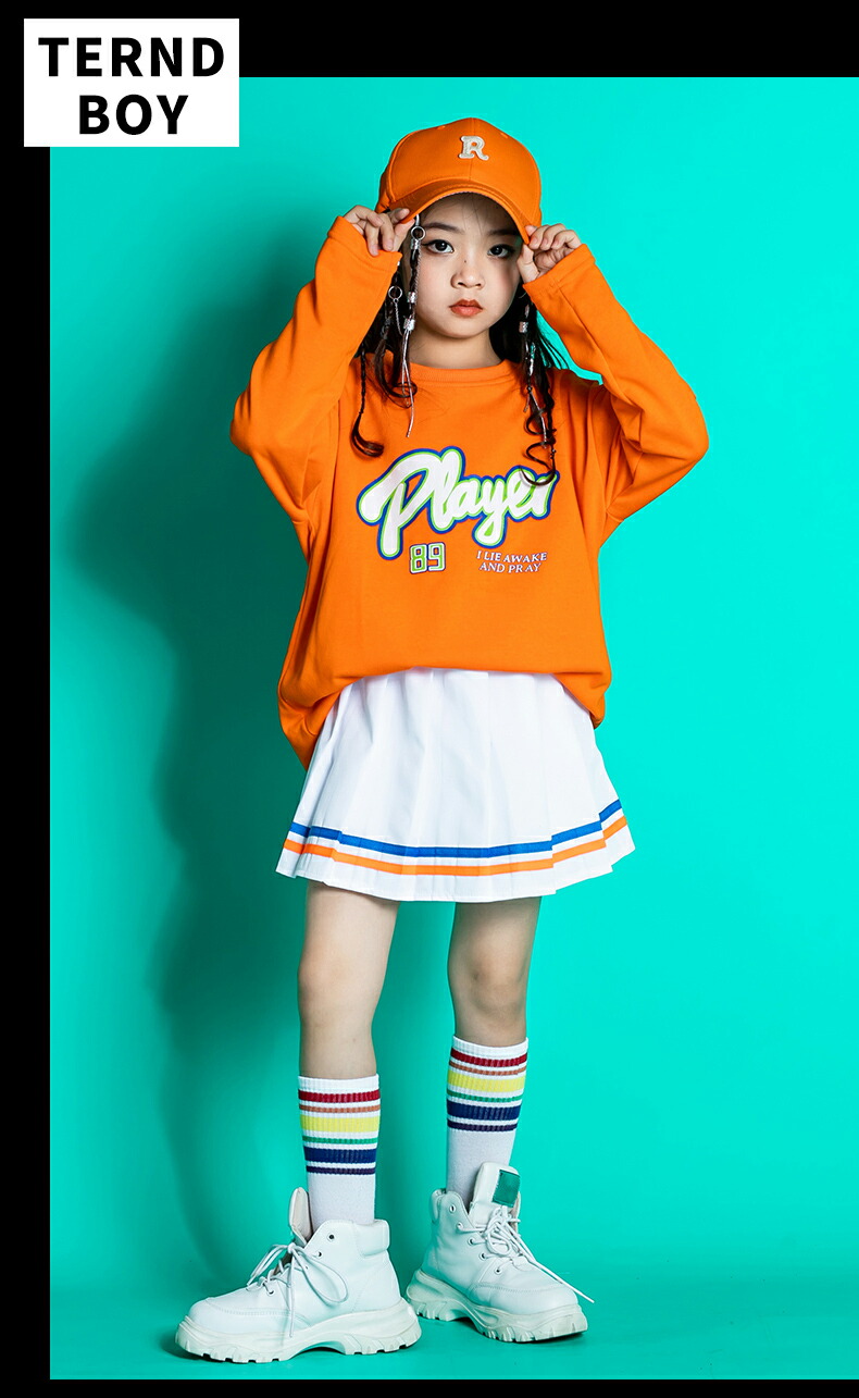 キッズダンス衣装 セットアップ Tシャ キッズ スーツ カジュアルセットアップ カジュアルパンツセット 新登場! タイプ1(オレンジロンT+スカート) タイプ2(オレンジロンT+パンツ) タイプ3(ホワイトロンT+スカート) タイプ4(ホワイトロンT+パンツ) 110サイズ 120サイズ 130サイズ 140サイズ 150サイズ 160サイズ 170サイズ 180サイズ