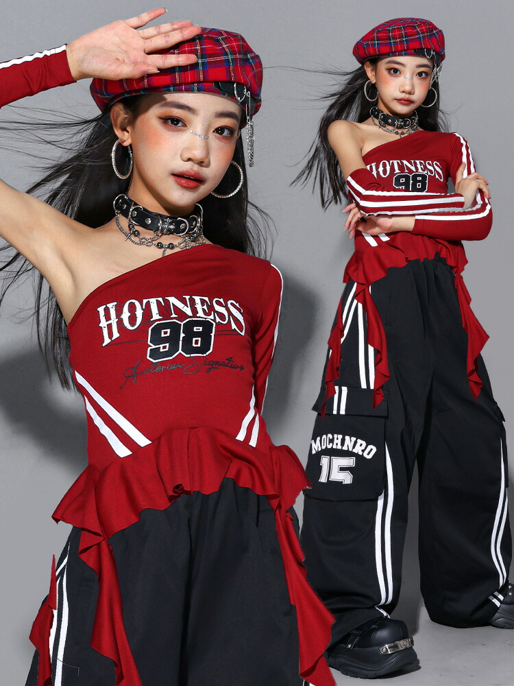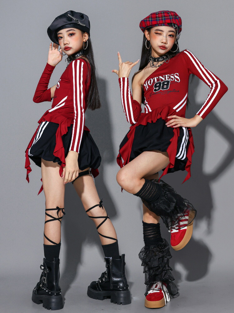 ガールズ ヒップホップ 衣装 赤 黒 キッズ ベビー マタニティ 新登場! 長袖パンツタイプ2点set 長袖スカートタイプ2点set オフショルパンツタイプ3点set オフショルスカートタイプ3点set 長袖トップスのみ オフショルトップスのみ パンツのみ スカートのみ 110サイズ 120サイズ 130サイズ 140サイズ 150サイズ 160サイズ 170サイズ 180サイズ