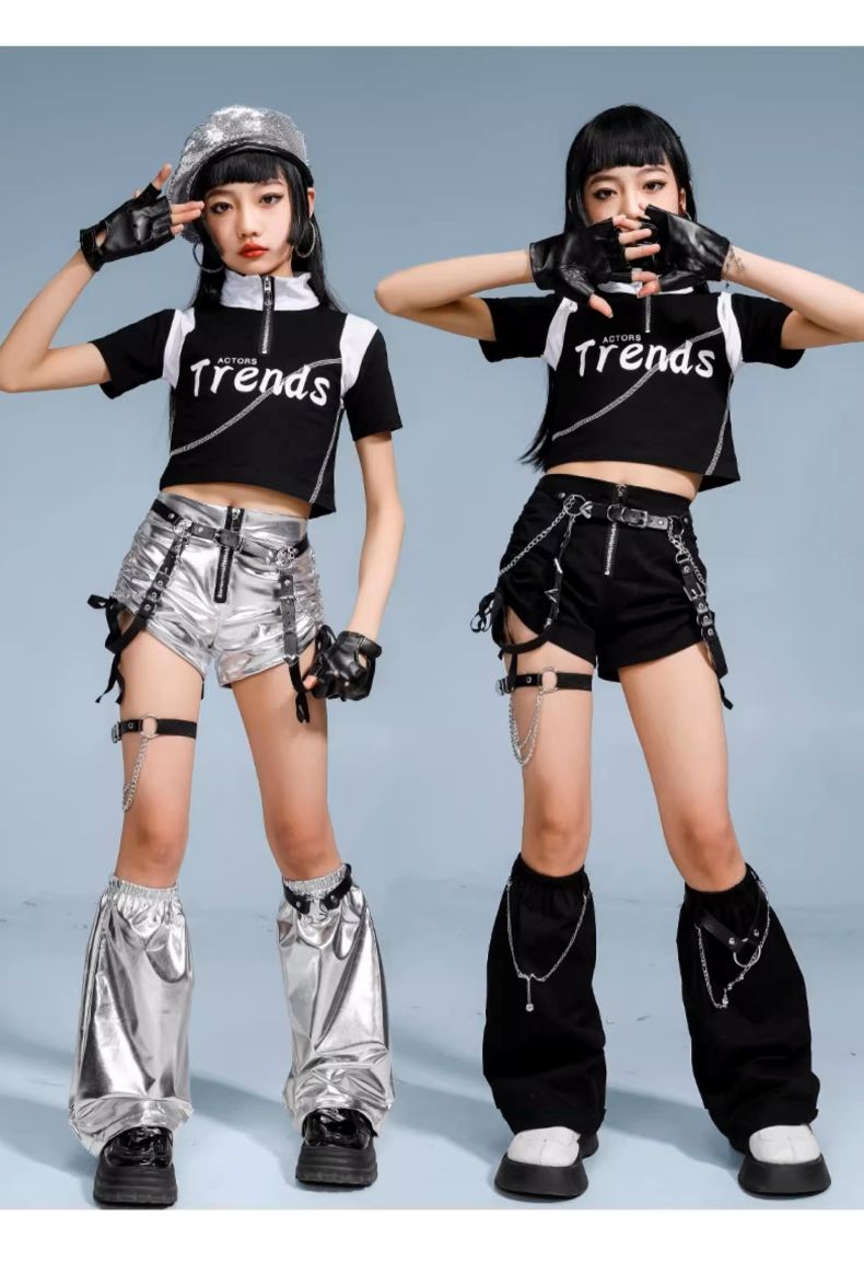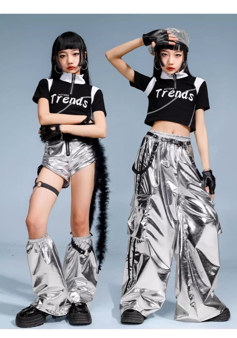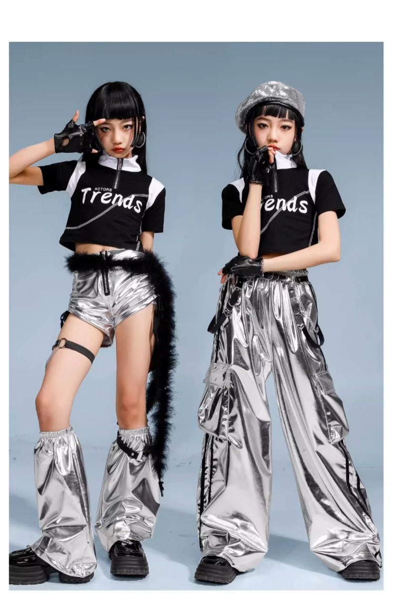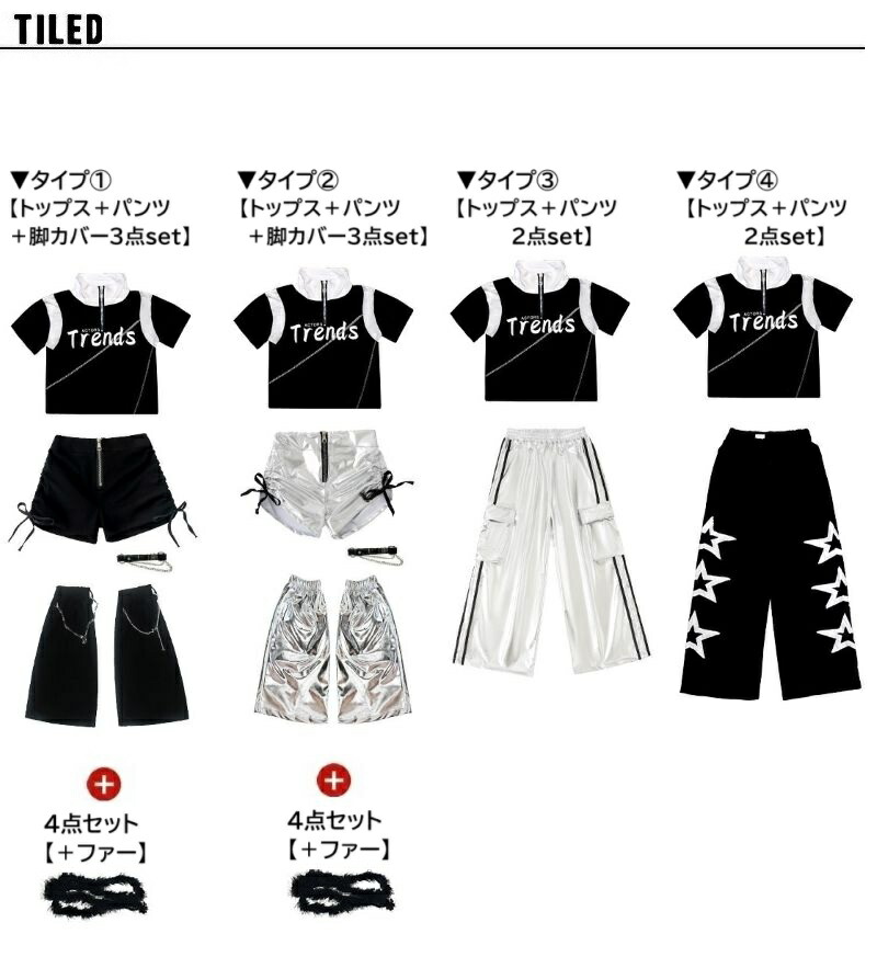 ダンス衣装 キッズ セットアップ K- 体操 ダンス 社交ダンス ウェア 人気 タイプ1(黒短パン)上下3点set タイプ2(銀短パン)上下3点set タイプ3(銀長ズボン)上下2点set タイプ4(黒長ズボン)上下2点set タイプ1上下4点set(ファー付き) タイプ2上下4点set(ファー付き) トップスのみ 黒短パンのみ(脚カバー込み) 銀短パンのみ(脚カバー込み) 銀長ズボンのみ 黒長ズボンのみ 110サイズ 120サイズ 130サイズ 140サイズ 150サイズ 160サイズ 170サイズ 180サイズ