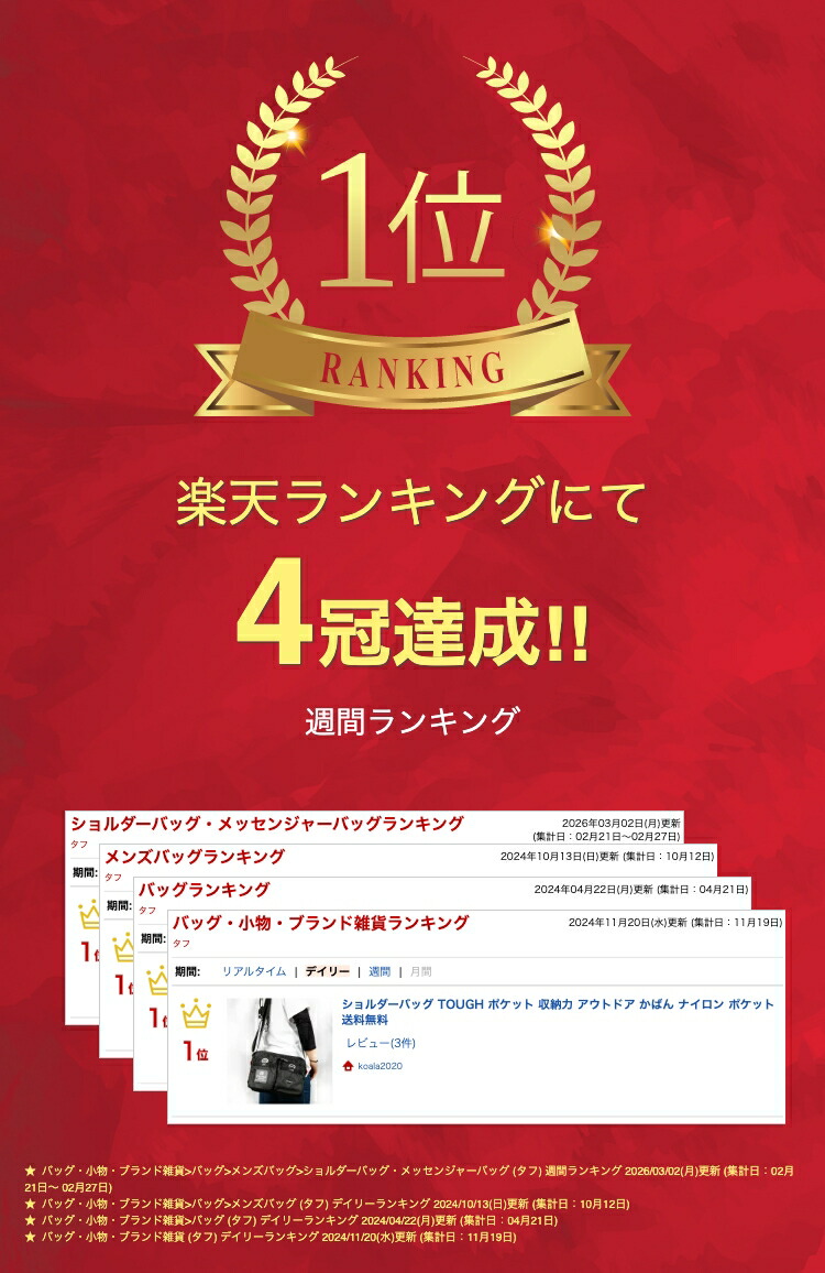 ショルダーバッグ TOUGH ポケット 収納力 アウトドア かばん ナイロン ポケットショルダーバッグ メンズバッグ ビジネスバッグ 楽天ランキング1位商品 特集商品 高評価レビュー バッグ
