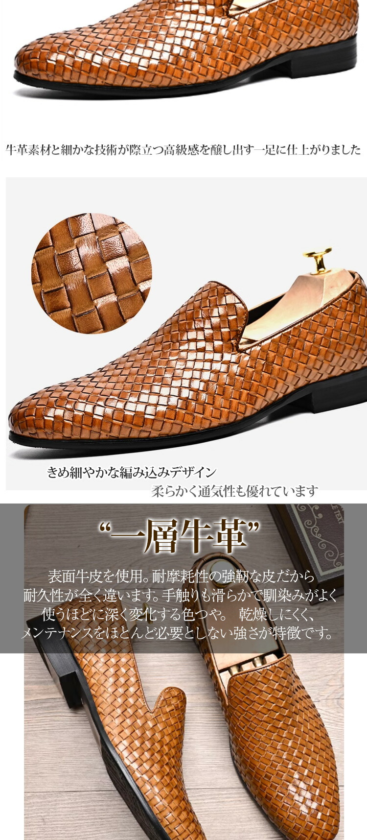 ローファー メンズ 編み込み イントレチャート本革 一層牛革 ビジネス...
