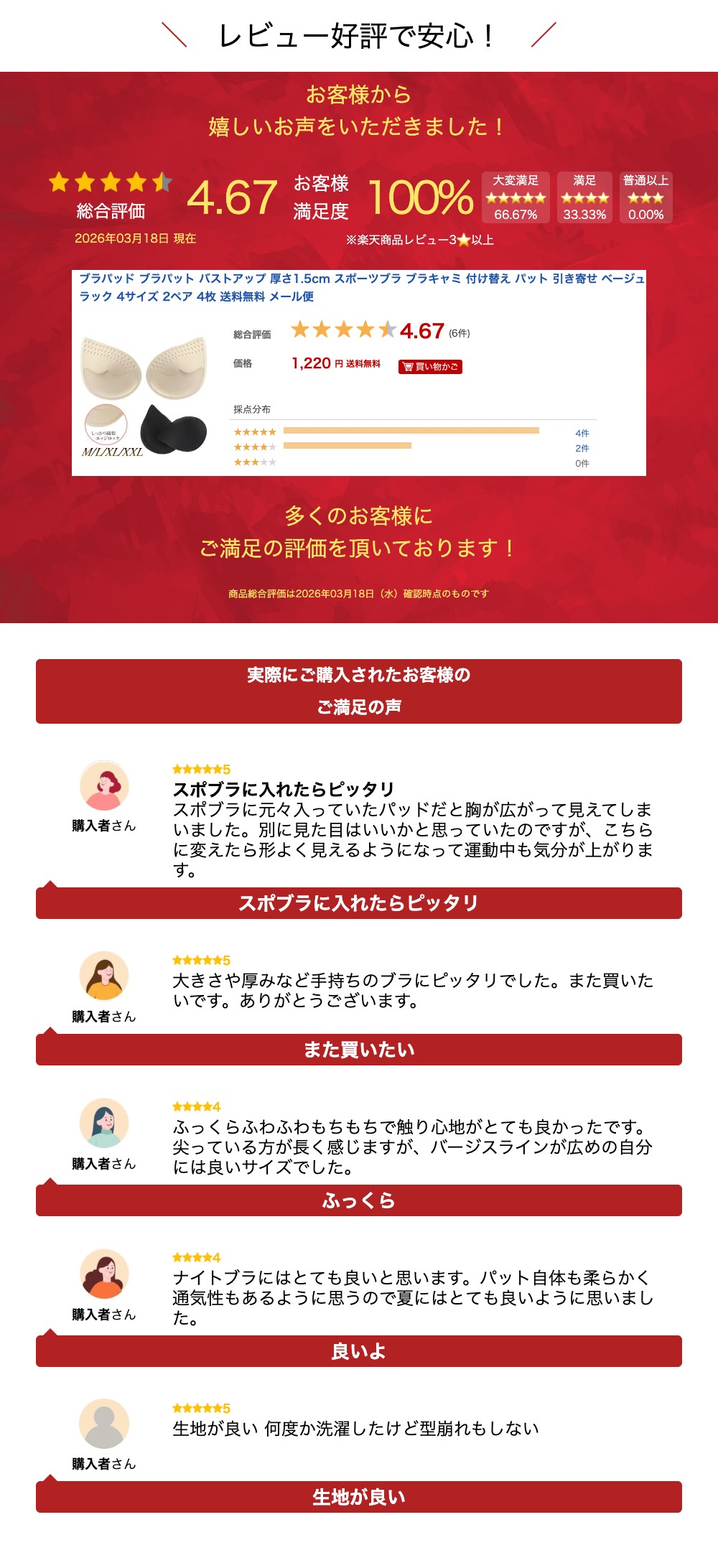ブラパッド ブラパット 厚さ1.5cm レディース インナー 下着 下着用アクセサリー パッド 人気 ベージュ ブラック M L XL XXL
