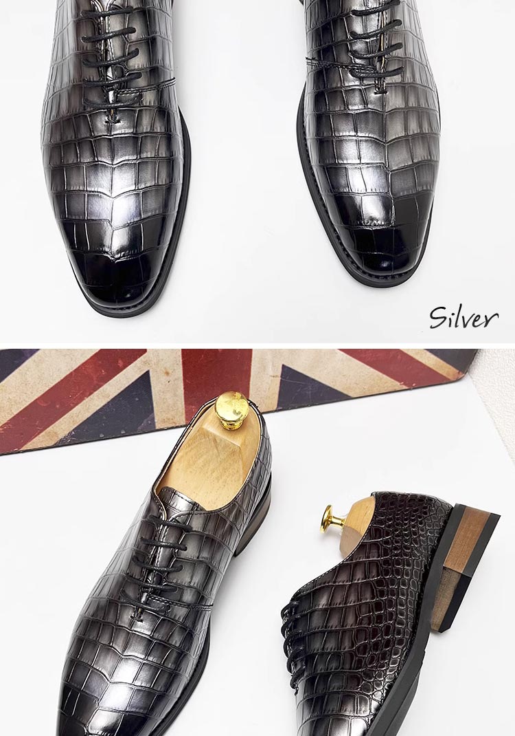 ビジネスシューズ メンズ スクエアトゥ クロコ型押し レースアップ コンビカラー ブラウン シルバー ブラック
