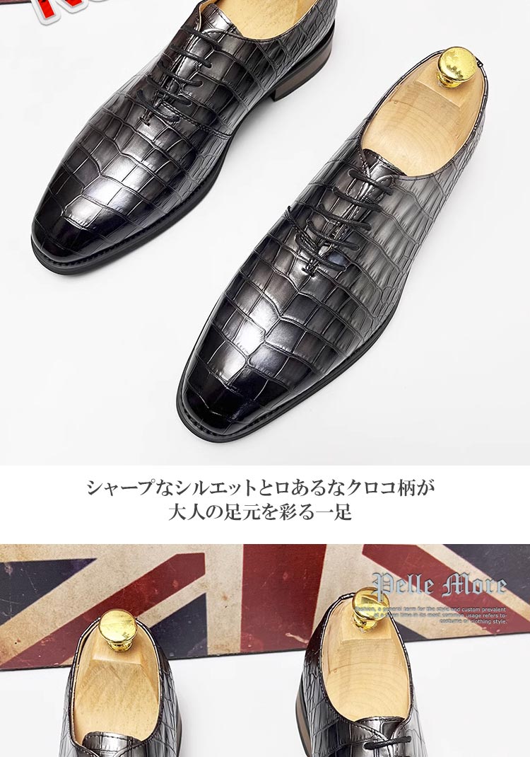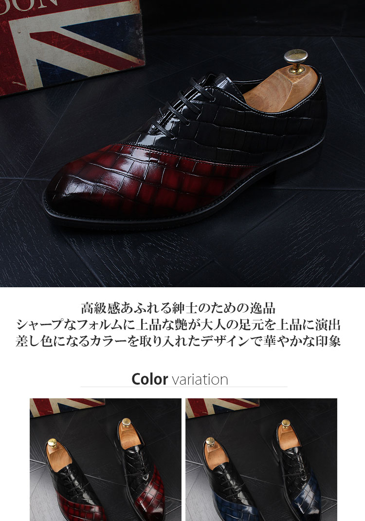カラーがおしゃれなクロコ風ビジネスシューズ