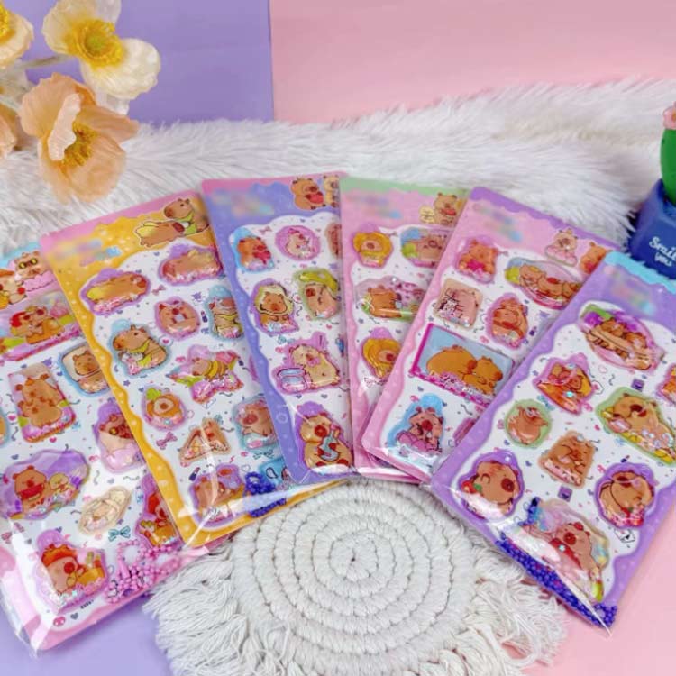 ウォーターシール シャカシャカシール ぷっくりシール 3D立体 スパンコール入り ぷくぷくシール 動物 アニマル かわいい 水入り 水揺れシール シール帳 ご褒美シール キャラクター