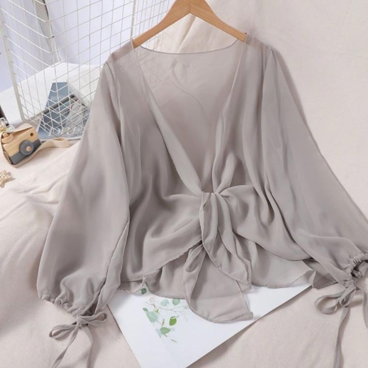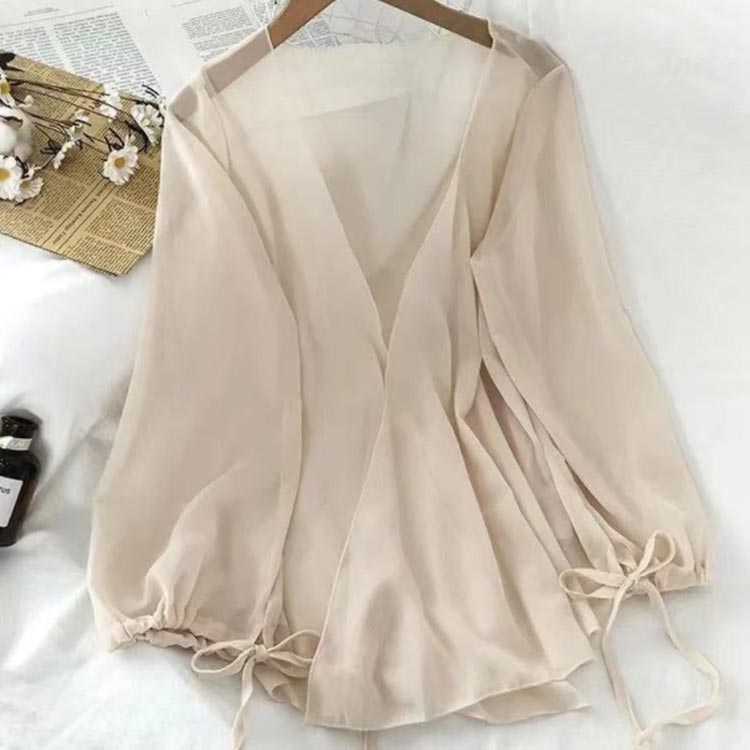サマーカーディガン シフォン レディー トップス カーディガン ボレロ 新作 ベージュ ホワイト ブラック グレー S M L XL 2XL