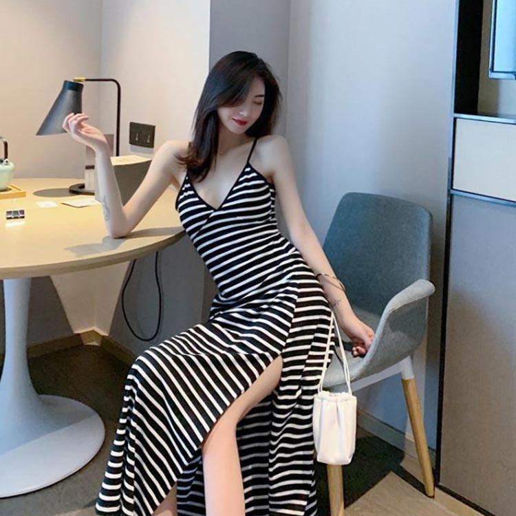 キャミワンピース マキシ丈 夏 レディ ワンピース 続々登場 ブラック ストライプ柄 M L XL 2XL