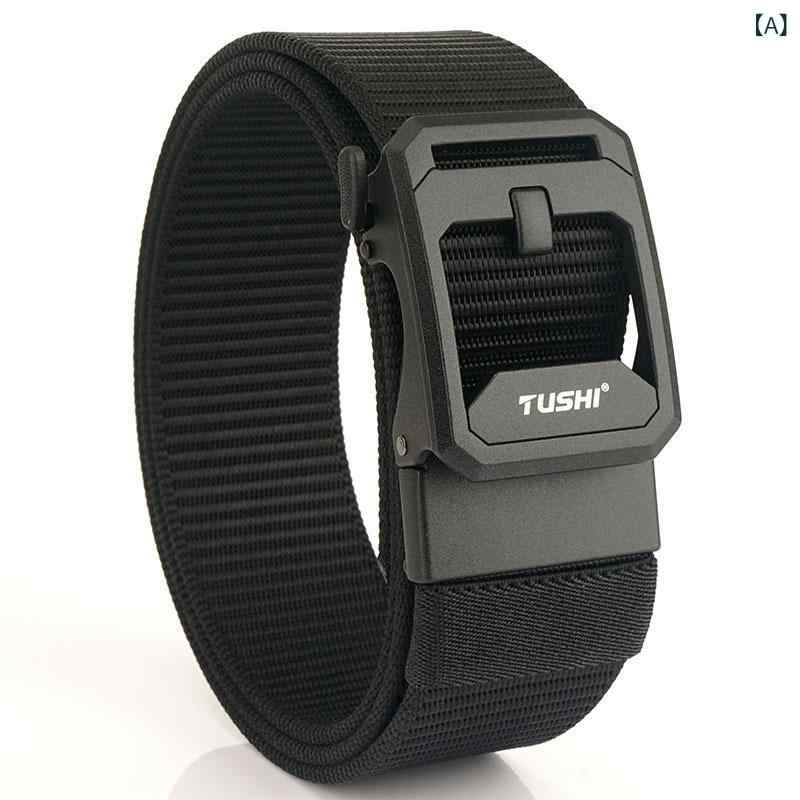 ベルト メンズ 紳士用 オートロック式 無段階調整 ナイロン キャンバス 合金バックル 電気メッキ加工 4.3cm幅 ウエストベルト 通気性 カジュアル ビジネス 普段使い アウトドア