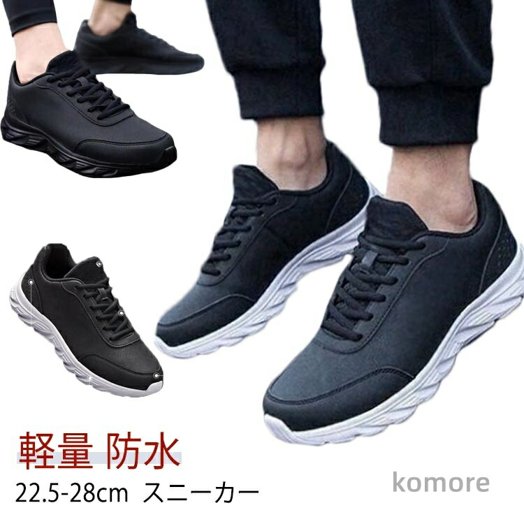 【送料無料】マル ブラック 軽量 軽い スニーカー 革靴 合皮 歩
