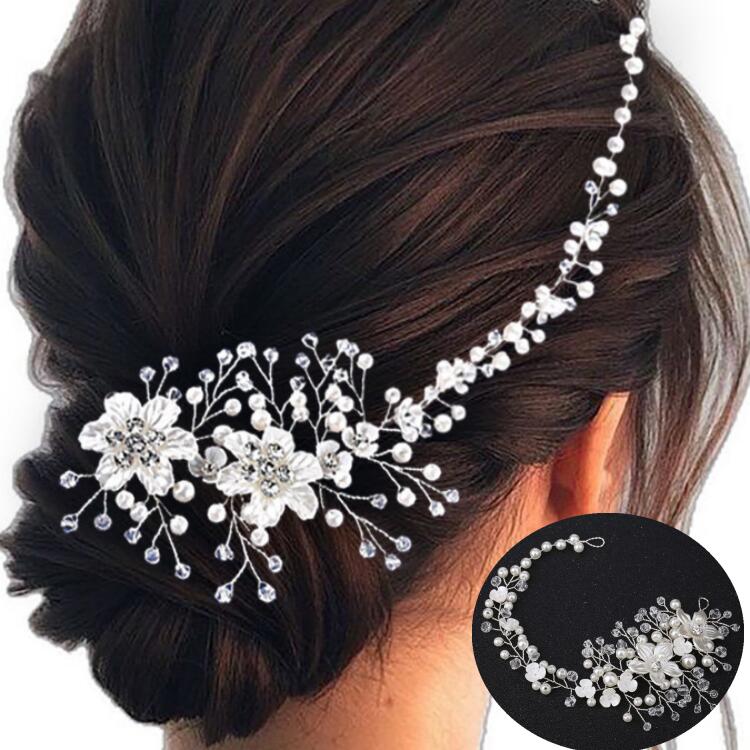 ブライダル ヘッドドレス パール クリスタル 花嫁 髪飾り ウェディング ヘアアクセ 結婚式 前撮り 成人式 二次会 パーティー 花柄 ビジュー ワイヤー カチューシャ おしゃれ 上品 ヘッドピース