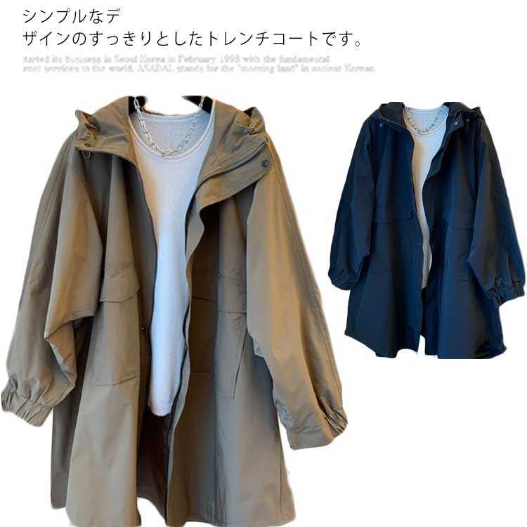 トレンチコート レディース アウター ブルゾン ジャンパー マウンテンパーカー フード付き 羽織り ジャケット 体型カバー 裏地あり ロング丈 ポケット付き お洒落 カジュアル 春秋