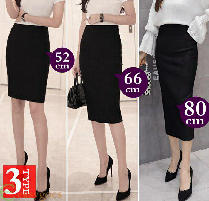 タイトスカート レディース 黒 ハイウエスト スリット入り 膝丈 ビジネス オフィス 通勤 仕事用 3 種類 面接