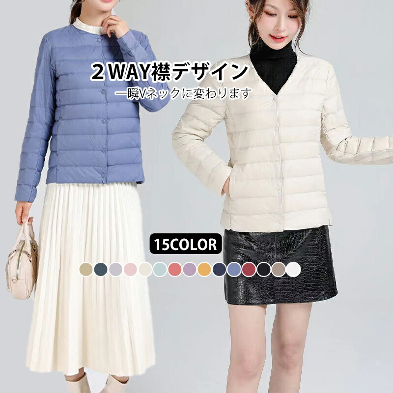 ダウンジャケット レディース ショート ノーカラー 2way襟デザイン 軽量 コート ジャケット ダウンコート 冬服 保温性抜群 軽い 防寒 薄い 無地 ショート丈 収納袋 ポー シンプル