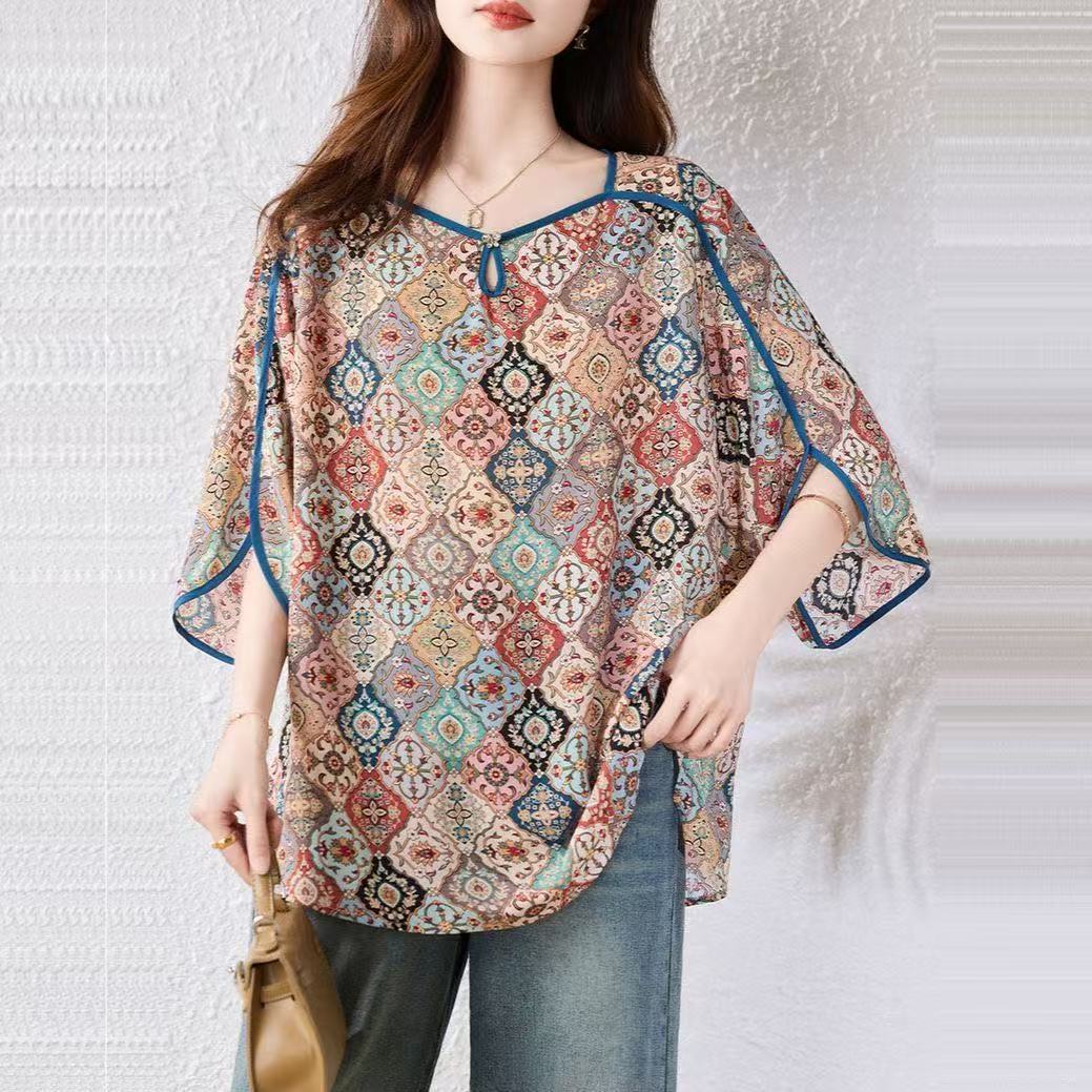 花柄シャツ レディース トップス 半袖 シフォンシャツ 大きいサイズ カットソー 薄手 総柄 カジュアル ゆるカットソー おしゃれ 可愛い かわいい おしゃれtシャツ 可愛いtシャツ LUGA10 夏