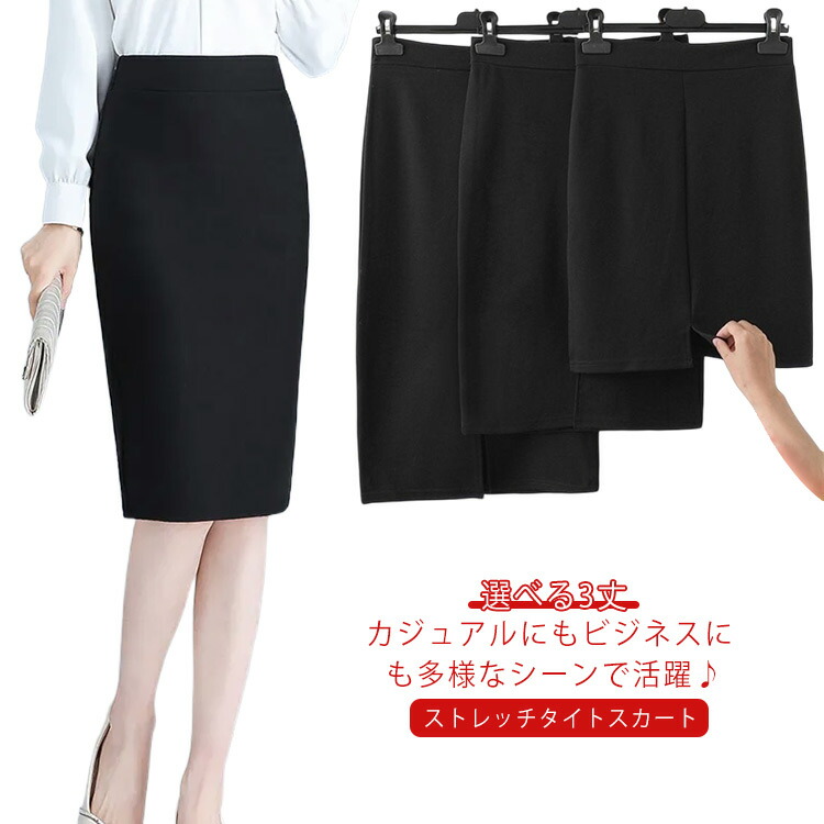 選べる3丈 タイト ビジネススカート 送料無料 スカート ユニフォーム 伸縮性 スカート ミディアム丈 通勤 洗える ブラック 大きいサイズ セレモニー 春 夏