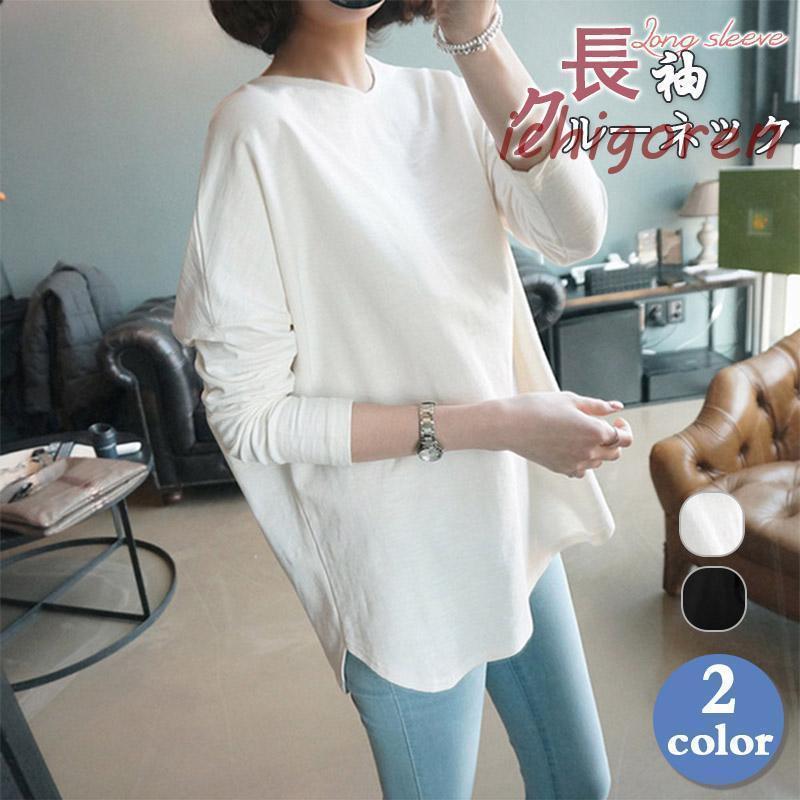 カットソー ロングシャツ レディース ゆったり カット 無地 長