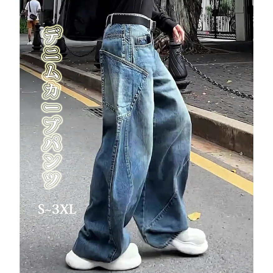 デニムパンツ ワイド パンツ レディース カーブパンツ デニム ワイドパンツ ボトムス カーブデニムパンツ ジーンズ 大きいサイズ ロング ゆったり 体型カバー ルーズ ワイドデニム カジュア 下半身