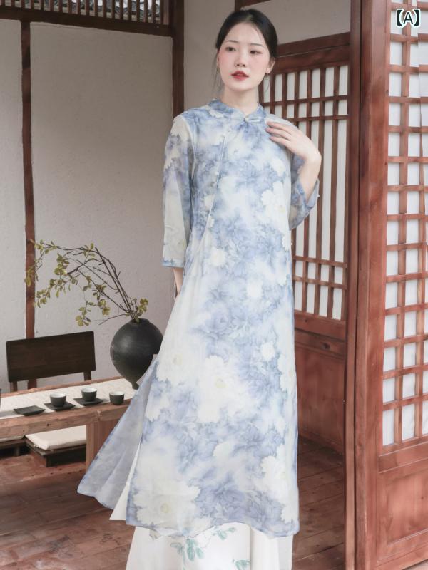 アオザイ チャイナ風 漢服 伝統 ワンピース パンツ レトロ レディース 禅 夏 上品 エスニック 涼しい ファッション