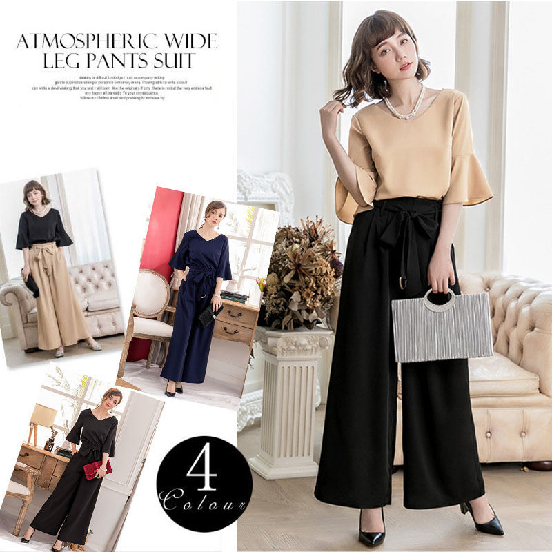 パンツスーツ パンツドレス 入学式 ママスーツ 卒業式 パーティードレス ワイドパンツ 上下セット 体型カバー きれいめ スーツ パーティー フォーマル レディース プルオーバー オフィスカジュアル