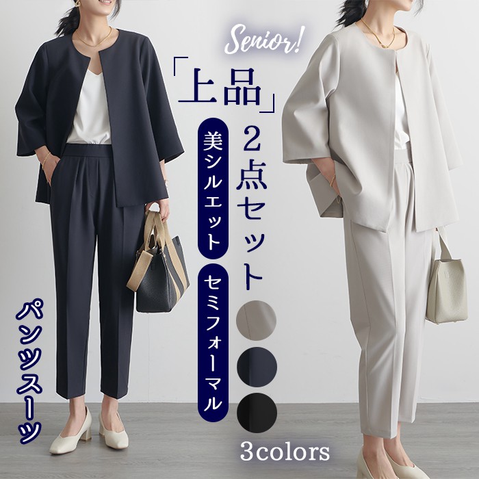 パンツスーツ セミフォーマル レディース 卒業式 入学式 ママスーツ ジャケット パンツ セットアップ 卒園式 入園式 セレモニー フォーマル ママ 体型カバー ブラックフォー スーツ