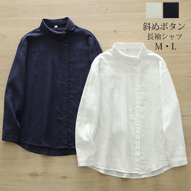 ブラウス 丸襟 ガーゼ トップス レディース 白シャツ ガーゼシャツ 長袖 春 斜めボタン 綿シャツ シャツブラウス ダブルガーゼ